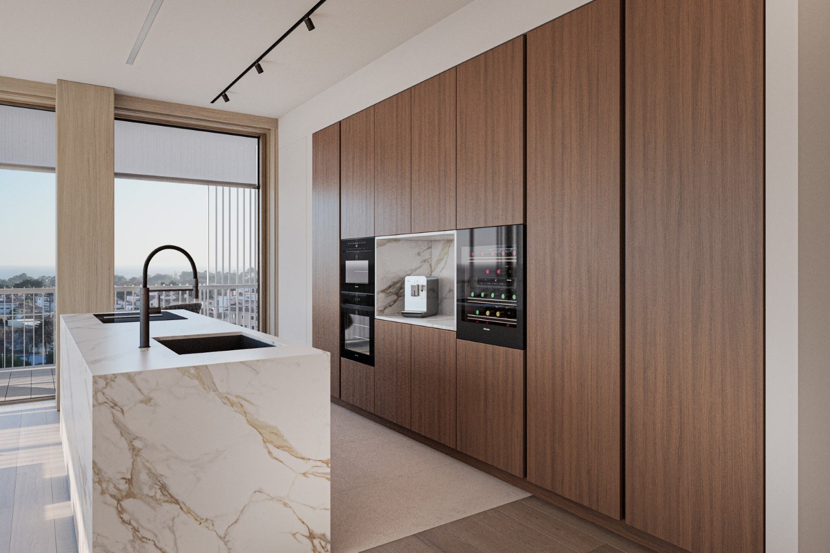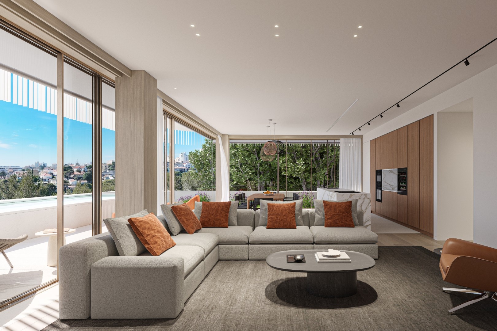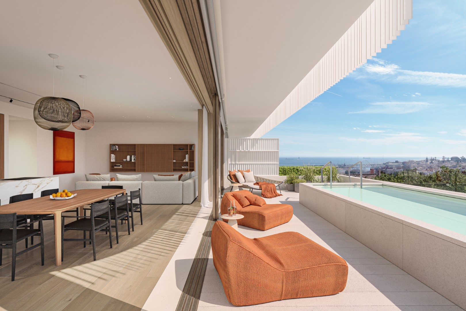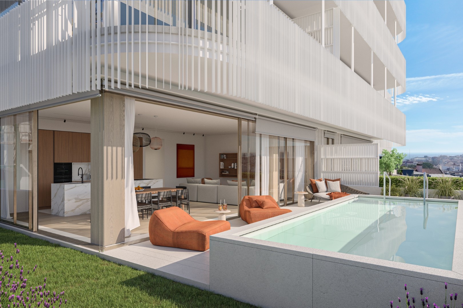 Consisting of two buildings with 14 residences in total, it offers exquisite flats ranging from two-bedroom (T2) to four-bedroom (T4), with plenty of natural light through the large windows, and includes generous terraces, private and communal rooftop swimming pools, garden, gym, garage, storage room and close proximity to the city center.
