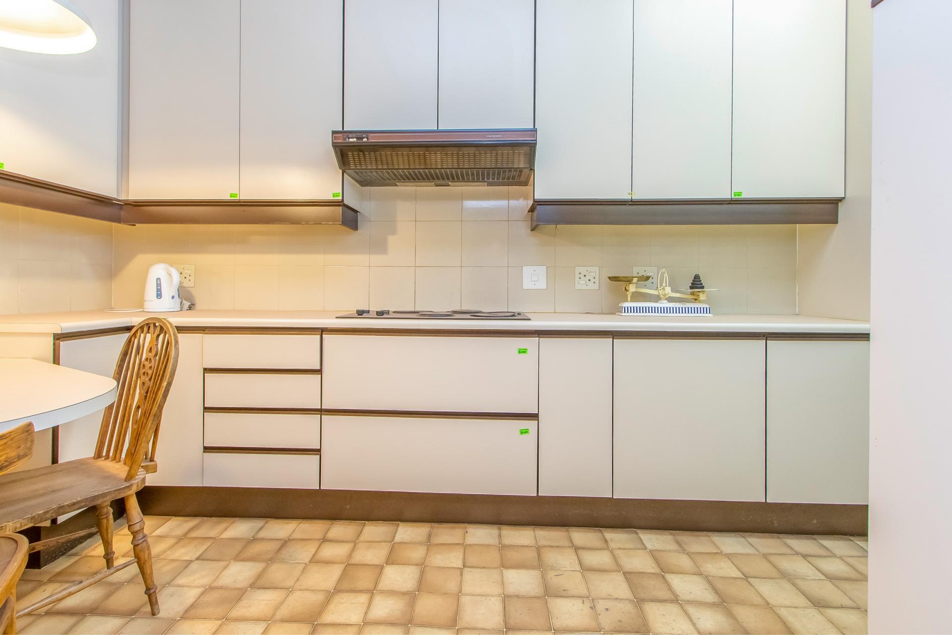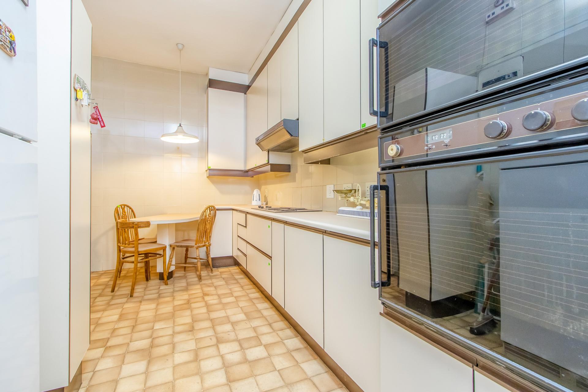 With three spacious bedrooms, two well-appointed bathrooms, and a convenient guest toilet, the apartment is designed for comfortable family living. Built-in cupboards provide abundant storage throughout.