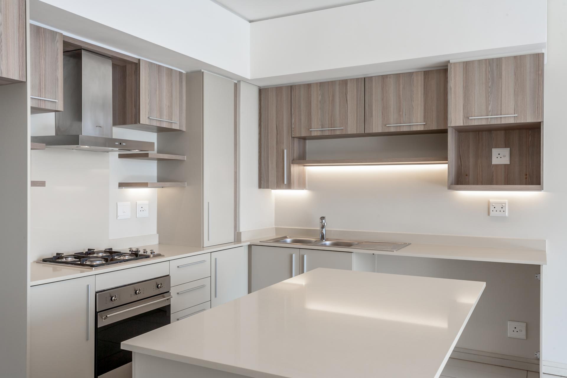 The kitchen flows into the spacious living and dining area, which opens onto a second balcony with elevated views of Rosebank. Large windows and the apartment’s north-facing orientation allow natural light to stream in, creating a warm and inviting atmosphere throughout.