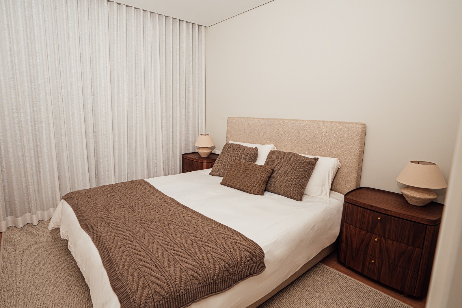Located in the prestigious Monview development, this stunning T3 garden apartment combines contemporary architecture by Sidney Quintela with premium finishes and exclusive amenities.