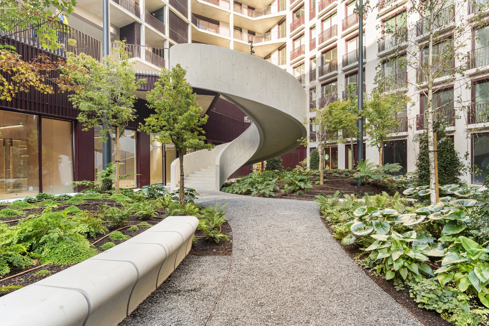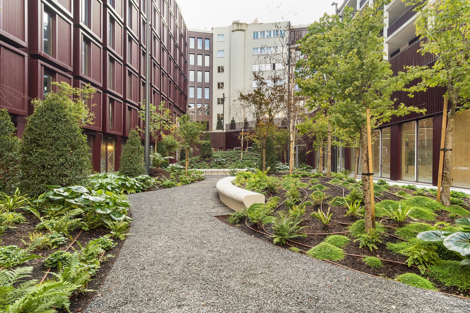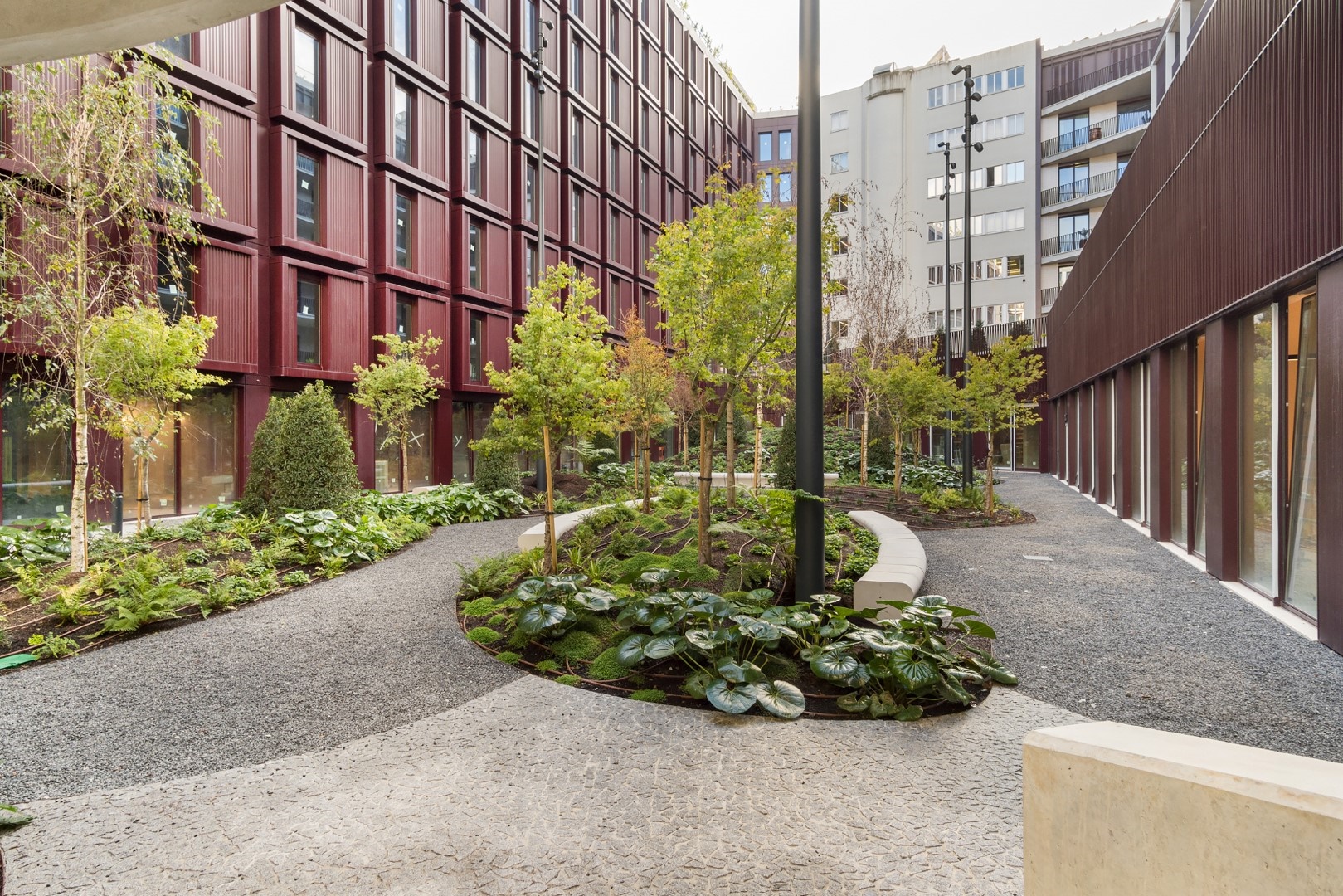 The Bonjardim development surrounds the city's new center of attraction, a Portuguese cobbled square, surrounded by lawned gardens and large trees that will be a meeting point with terraces, cafés, restaurants, stores and services. The condominium also offers a range of amenities for residents, such as a community room, an equipped gym and a running track and lounge area, both on the roof of the building.