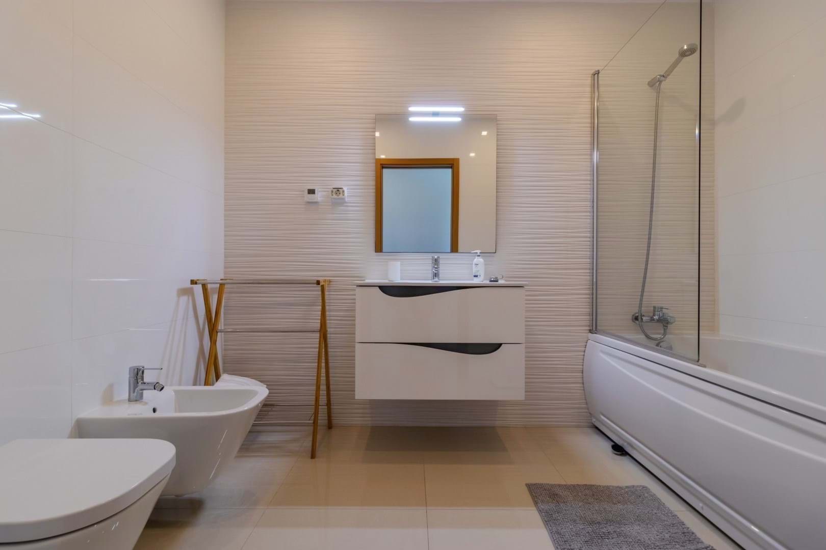 Each of the three bedrooms is equipped with built-in wardrobes for ample storage space. The two bathrooms are beautifully designed with premium fixtures, adding to the apartments sophisticated ambiance.