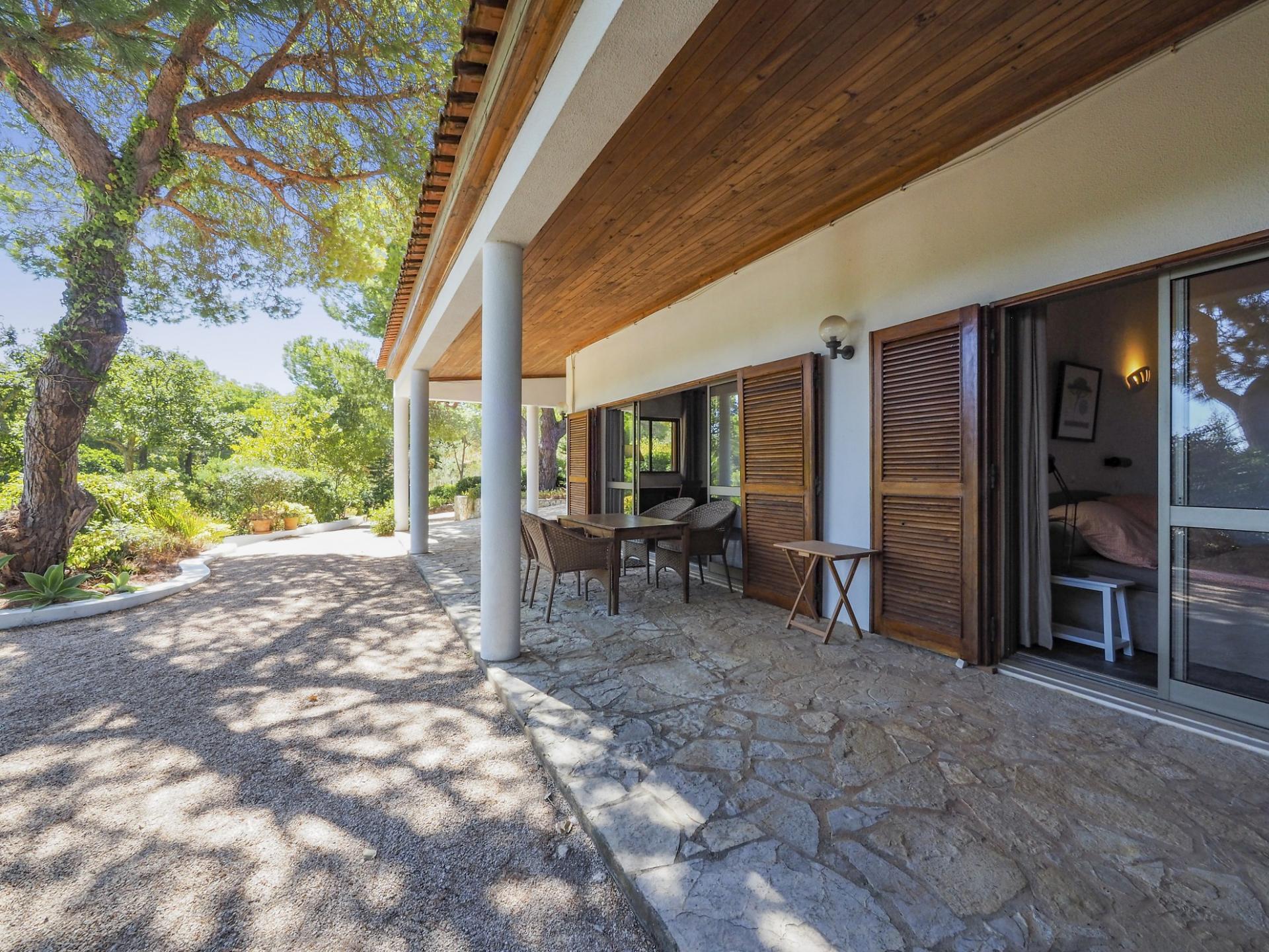 Os exteriores foram concebidos para momentos de lazer e convívio em família, com zonas de estar sombreadas e jardins maduros de fácil manutenção. Um furo e cisterna asseguram o abastecimento de água, estando também disponível a ligação à rede pública, se desejado. A moradia conta ainda com um telheiro para estacionamento, estacionamento exterior, entrada com 2 portões portão e sistema de alarme.