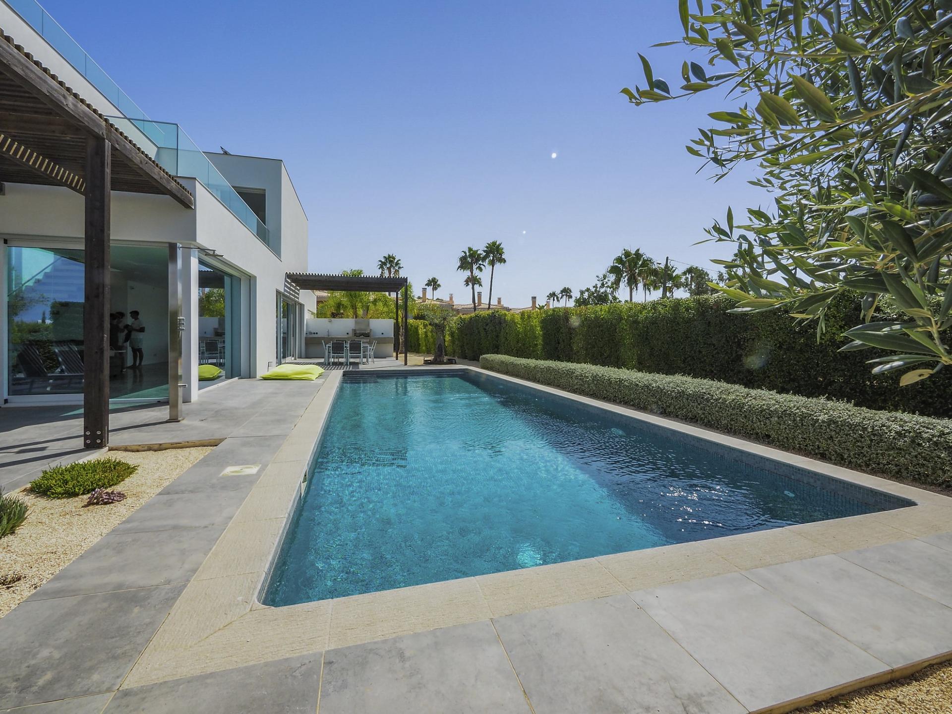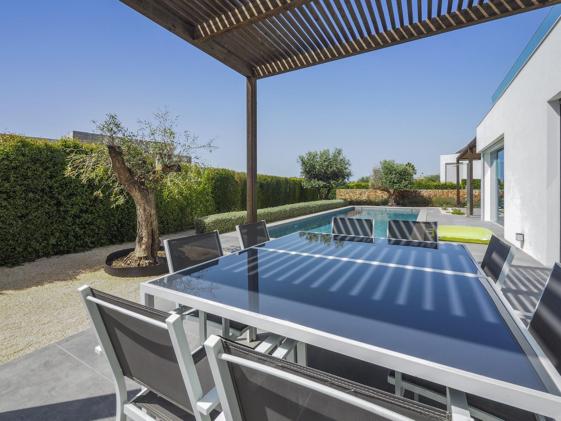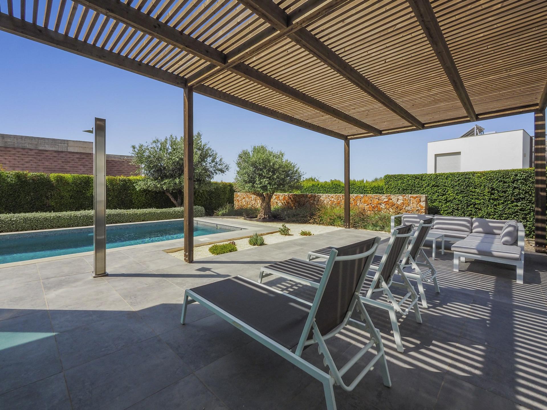 Outdoor living is at the heart of this property, with both covered and uncovered terraces providing the perfect spots for relaxing or dining al fresco. The private swimming pool is equipped with an electric cover and is complemented by surrounding sunbathing terraces.