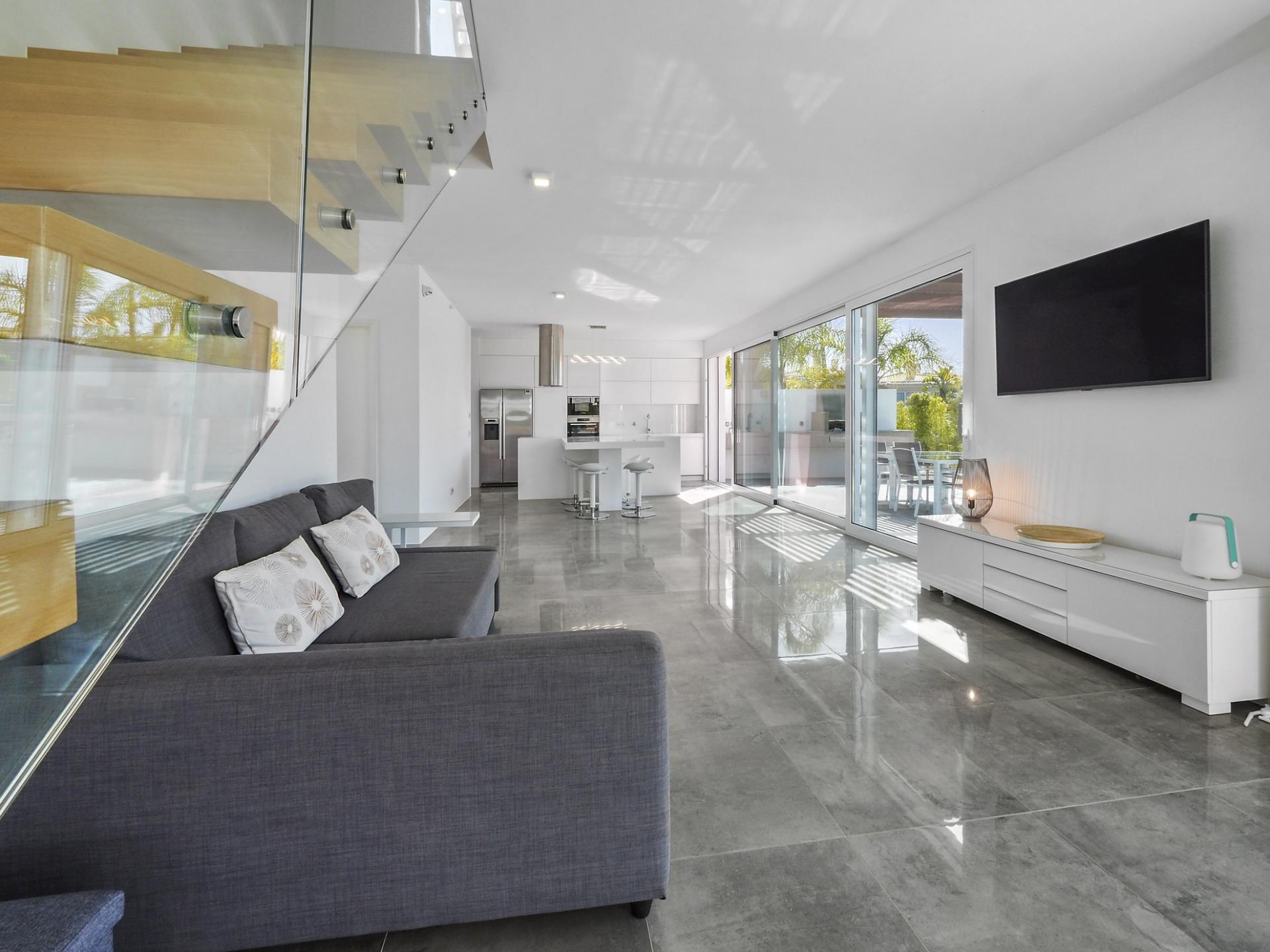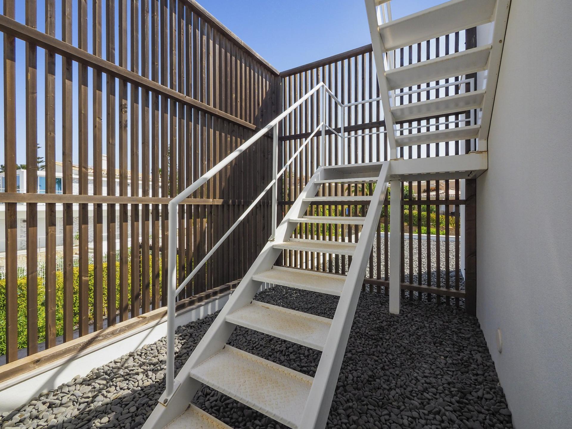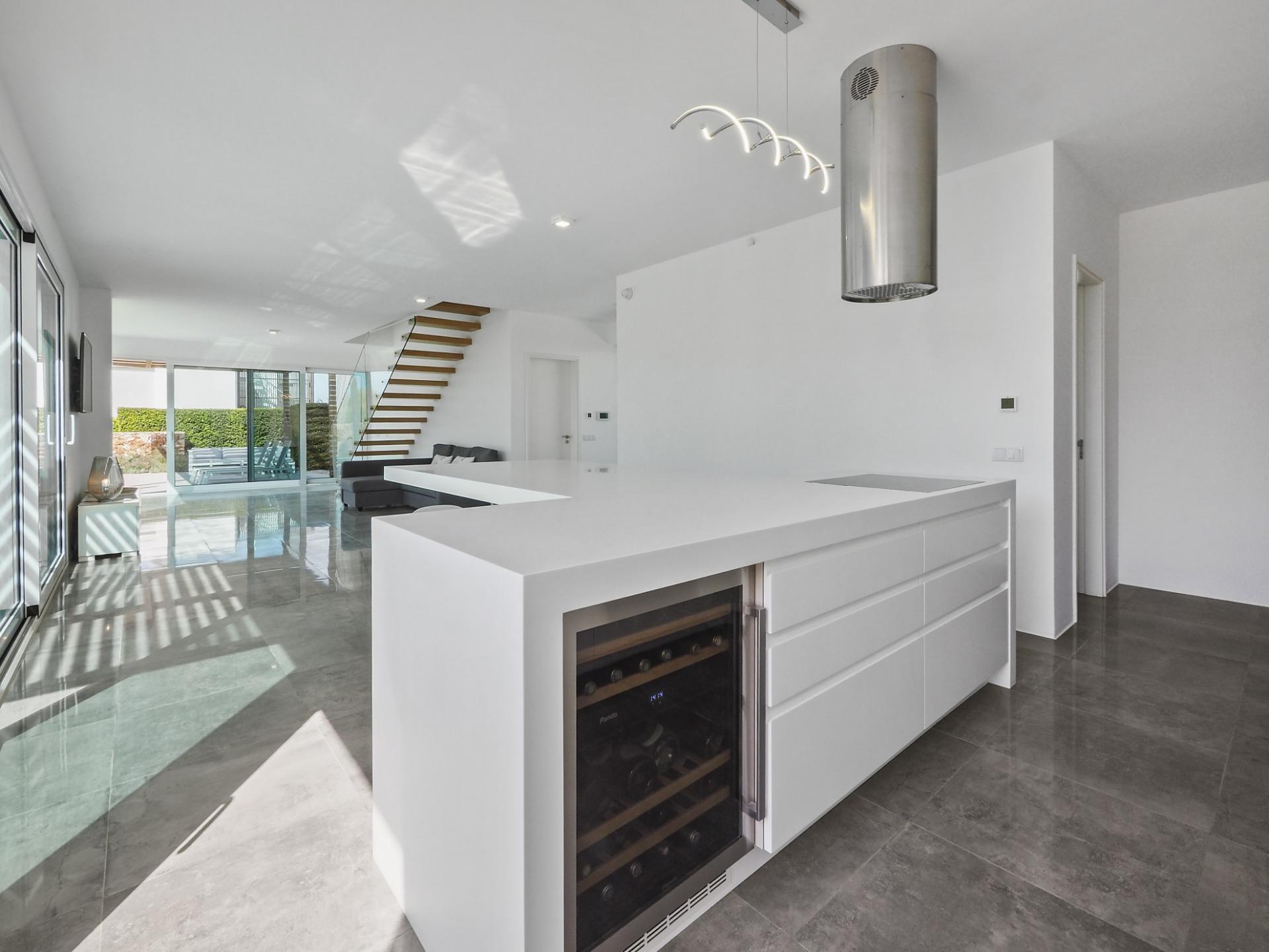 Set on a fully fenced plot of 1.005 m², the property boasts a generous 196 m² of living space spread over two floors and a roof terrace with beautiful sea views. Built in 2019, the home is thoughtfully designed to offer light-filled interiors and practical features for today’s lifestyle.