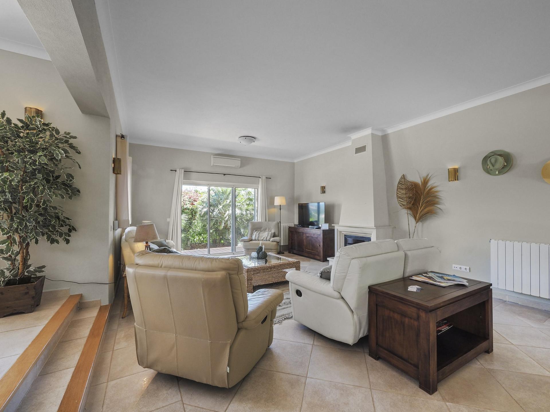 The villa has three bedrooms, all en-suite and all with fitted wardrobes. Two are located on the first floor and have access to the terrace with its outstanding views of Monchique mountains and over the golf course. All bedrooms offer direct outdoor access, creating a seamless indoor-outdoor lifestyle. There is a further room currently used as a bedroom and a guest W/C. At the heart of the home is a bright, open-plan living space with lounge, log burning fireplace, dining area, and modern kitchen. Patio doors lead to the terrace and pool area, partially covered for dining and lounging, and open to a generous pool area with BBQ, sun deck and mature garden.