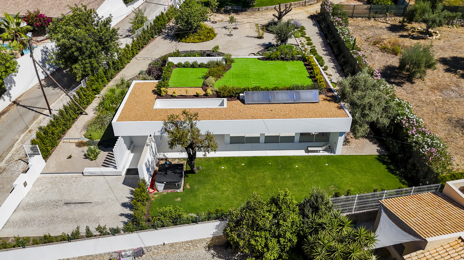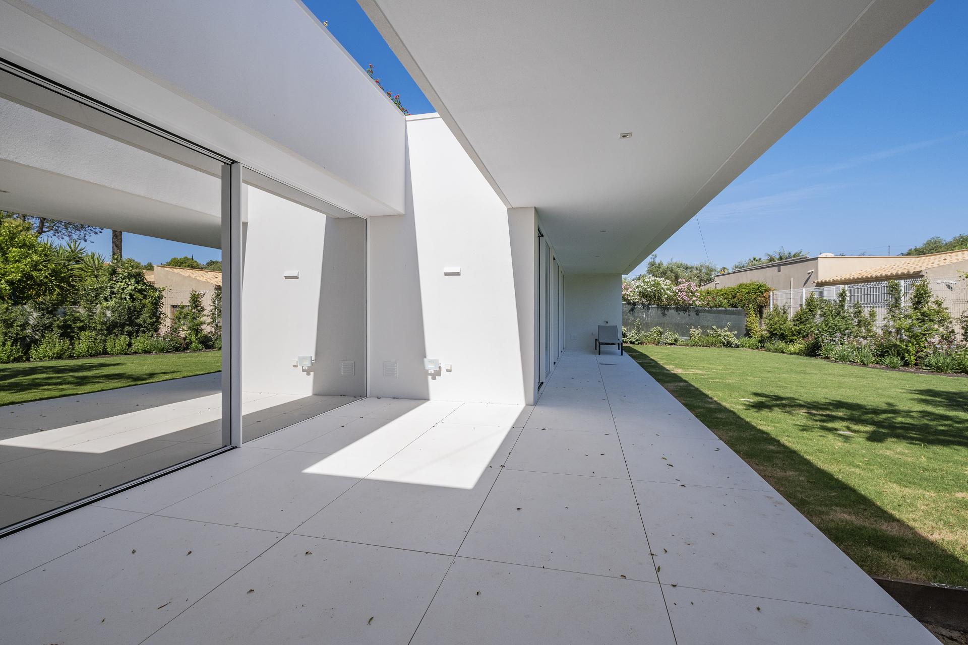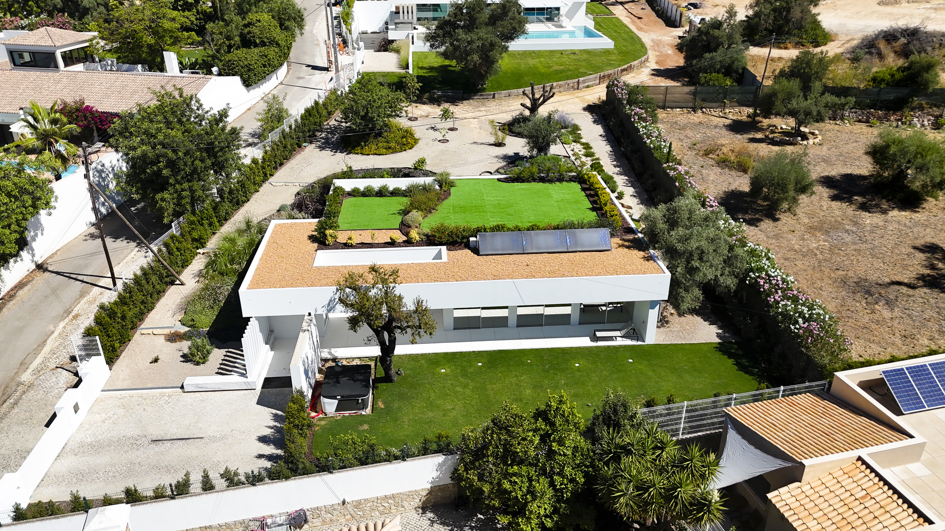 Located in the peaceful residential area of Sitio dos Quartos in Almancil, this modern single-storey villa offers a harmonious blend of privacy, design, and prime location. Surrounded by landscaped gardens and enclosed within a private plot of 1,362 m², the home is just minutes from Quinta do Lago, Vale do Lobo, and renowned golf courses. Contemporary architecture and expansive glass doors create seamless indoor-outdoor living in the heart of the Algarve.