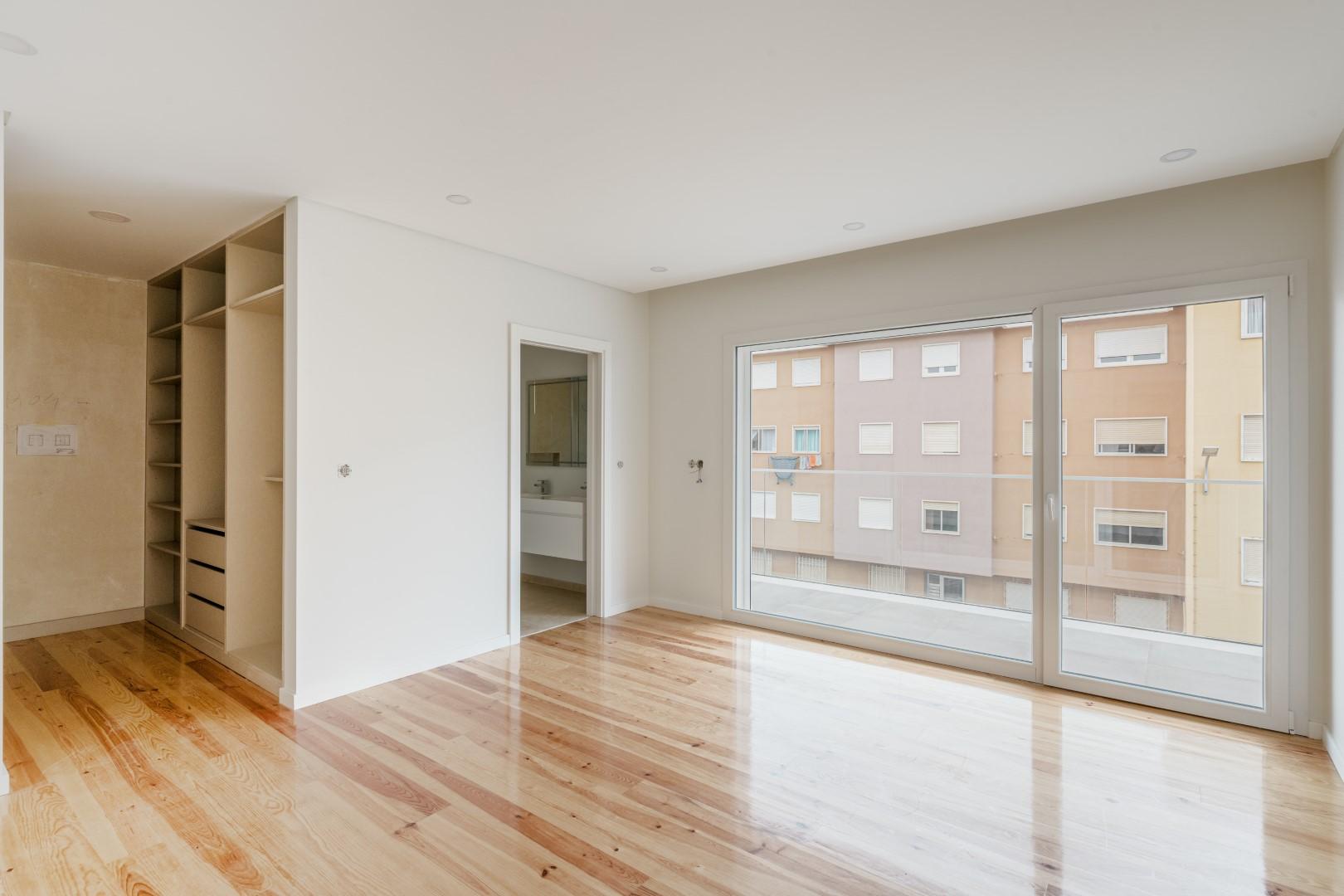 This excellent T3 Apartment, located on the first floor, has a spacious living room with access to a balcony, dining area and fully equipped open kitchen, guest toilet, two excellent suites and one bedroom with a bathroom. The apartment also has 3 parking spaces and storage room.