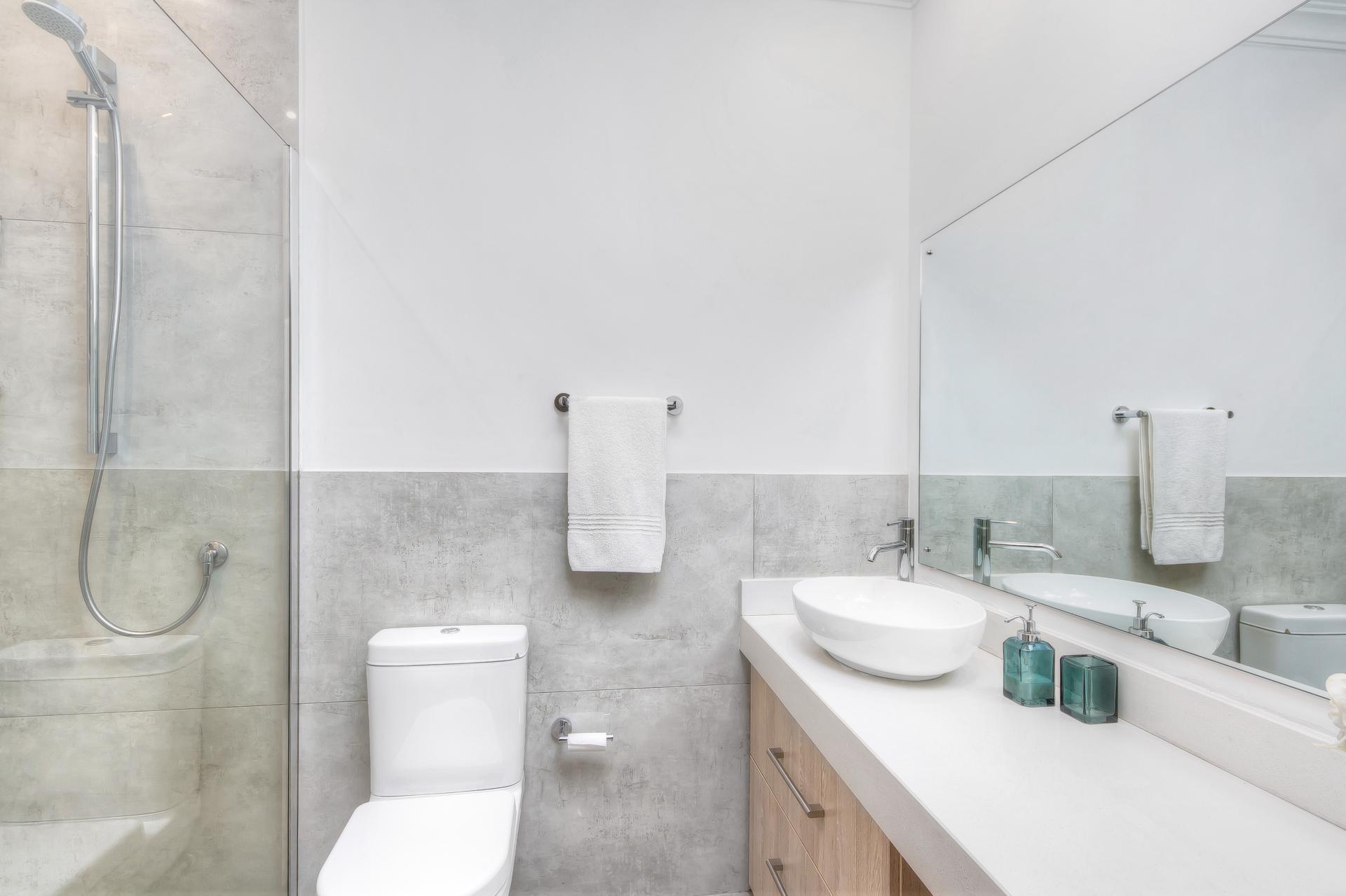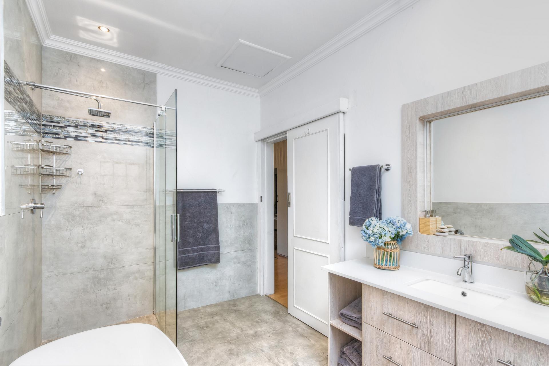 Upstairs, you’ll find three sunny bedrooms — all with beautiful laminate flooring. The spacious main bedroom boasts a newly renovated en-suite bathroom with a gorgeous freestanding tub, large shower, and double basins; ample cupboard space; air conditioning; and a private balcony with stunning views of the ridge. The expansive second bedroom offers sweeping vistas both north toward the reserve and south across the valley, while the third bedroom currently serves as a comfortable home office. A second family bathroom services the second and third bedrooms, offering practicality and privacy for family or guests. The second bedroom also features air conditioning for year-round comfort.