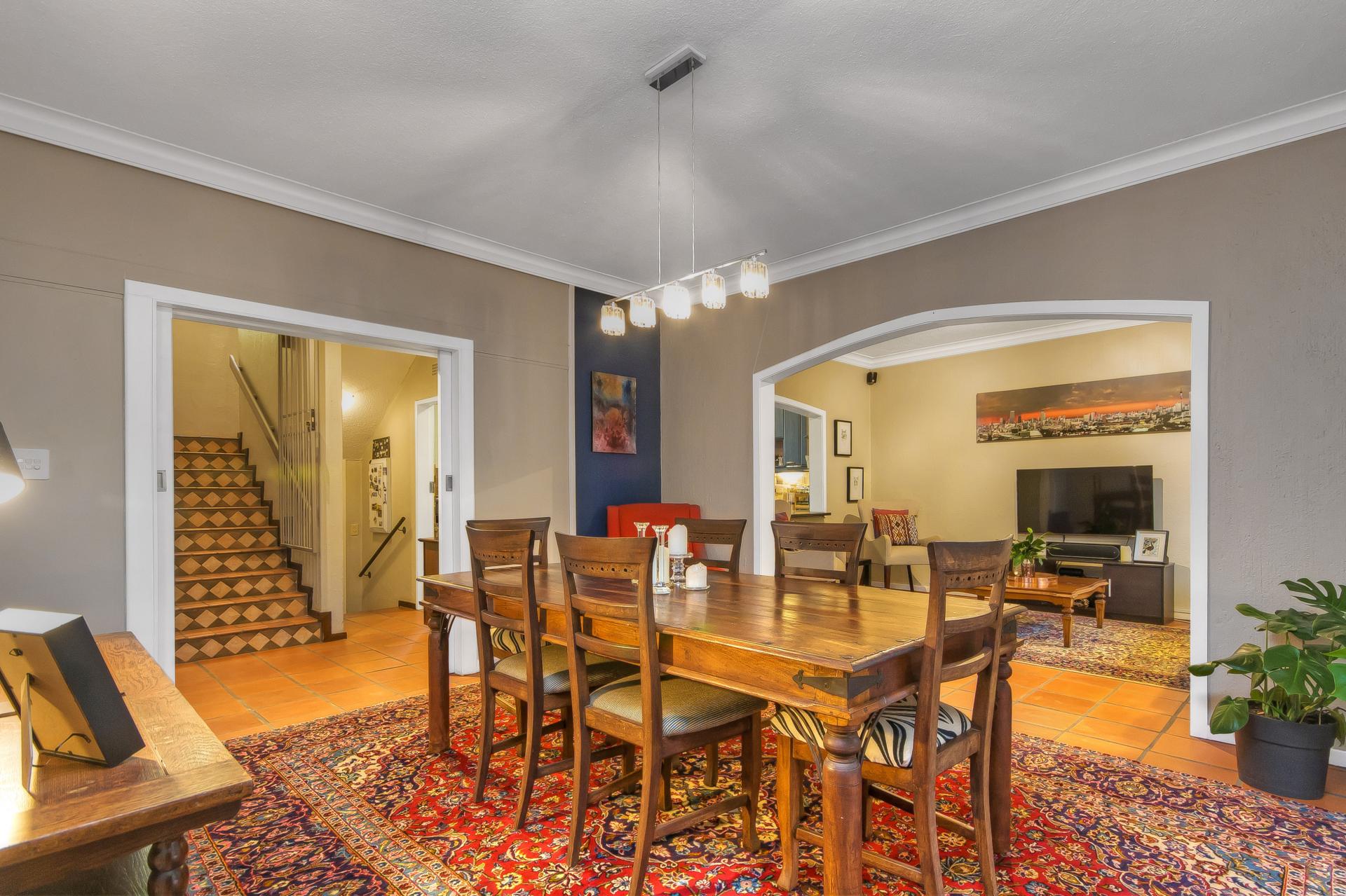 Double French doors open from both the dining and music rooms onto a generous covered patio. A roll-up canvas screen allows for all-season enjoyment, overlooking a lush, landscaped terraced garden filled with cycads and centred around a charming koi pond, home to five colourful Koi.