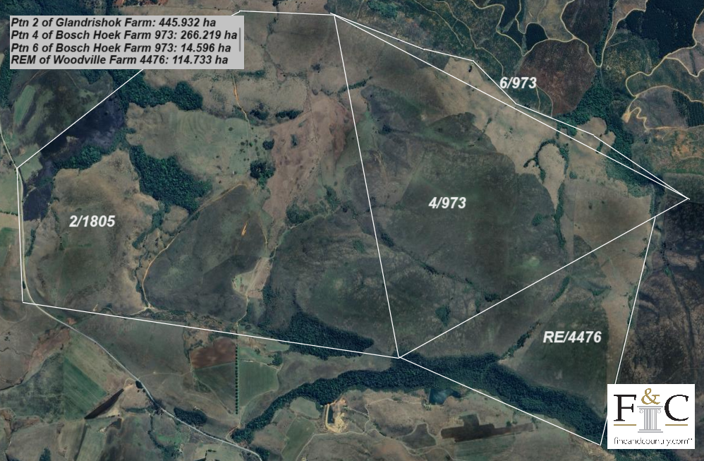 Included in the price is 5 additional farms with the extents. 266.219Ha, 14.596Ha, 114.733Ha, 128.481Ha & 170.900Ha