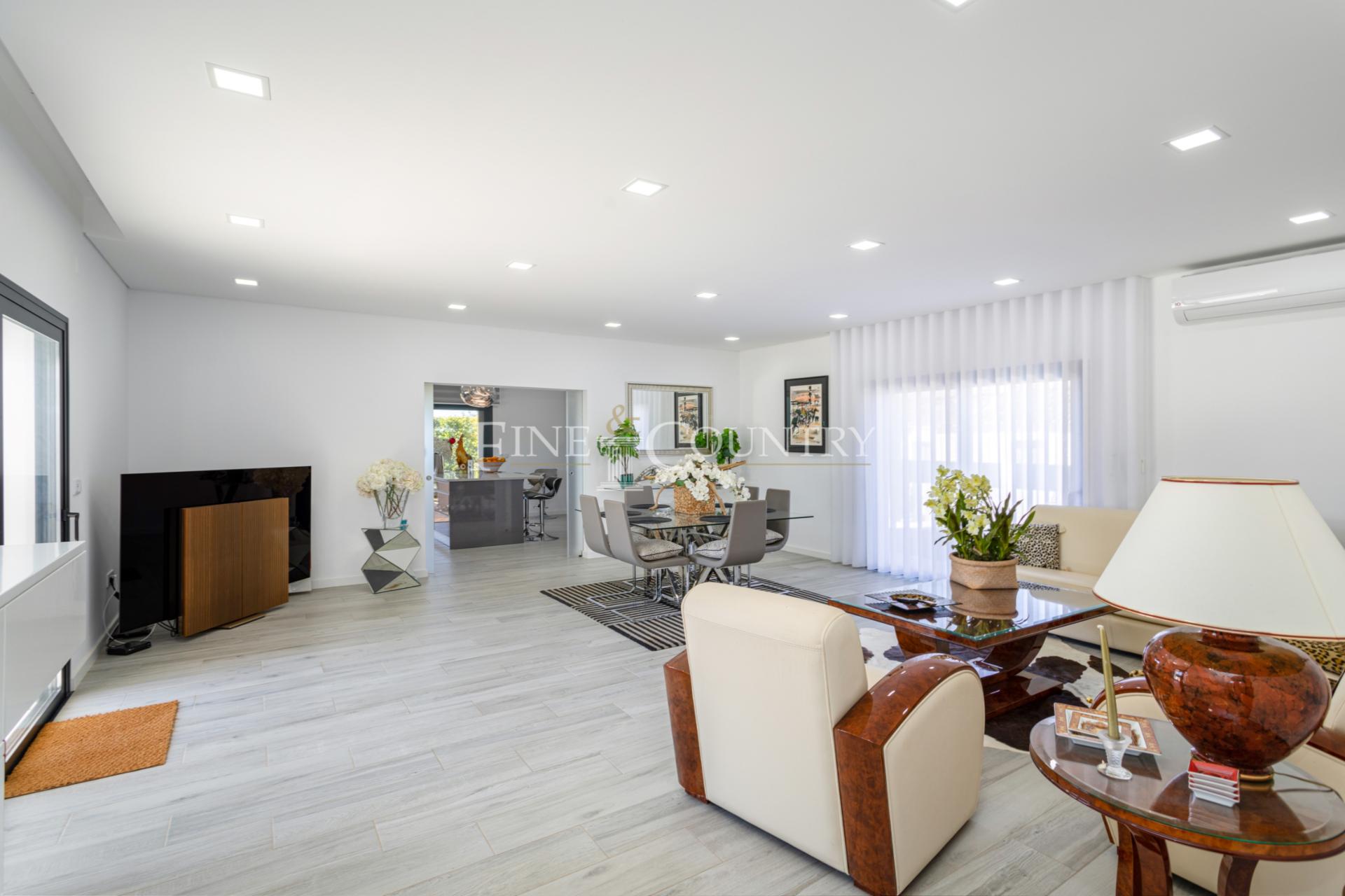 Located between sea and golf courses, this villa built in 2021 enjoys a unique location, in a quiet and local environment, close to all amenities. Altura beach is only 2.5 km away and will allow you long walks along its coastline to Praia Verde for example. Six golf courses, some of which internationally renowned, are less than 15 minutes by car. Presenting: