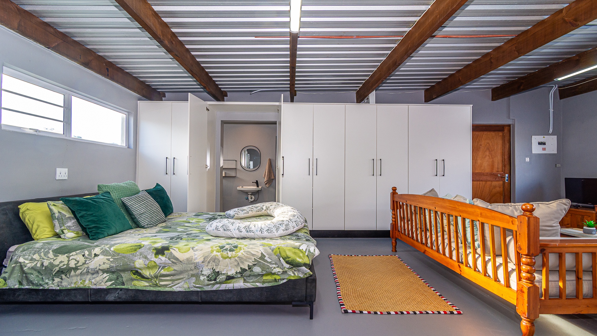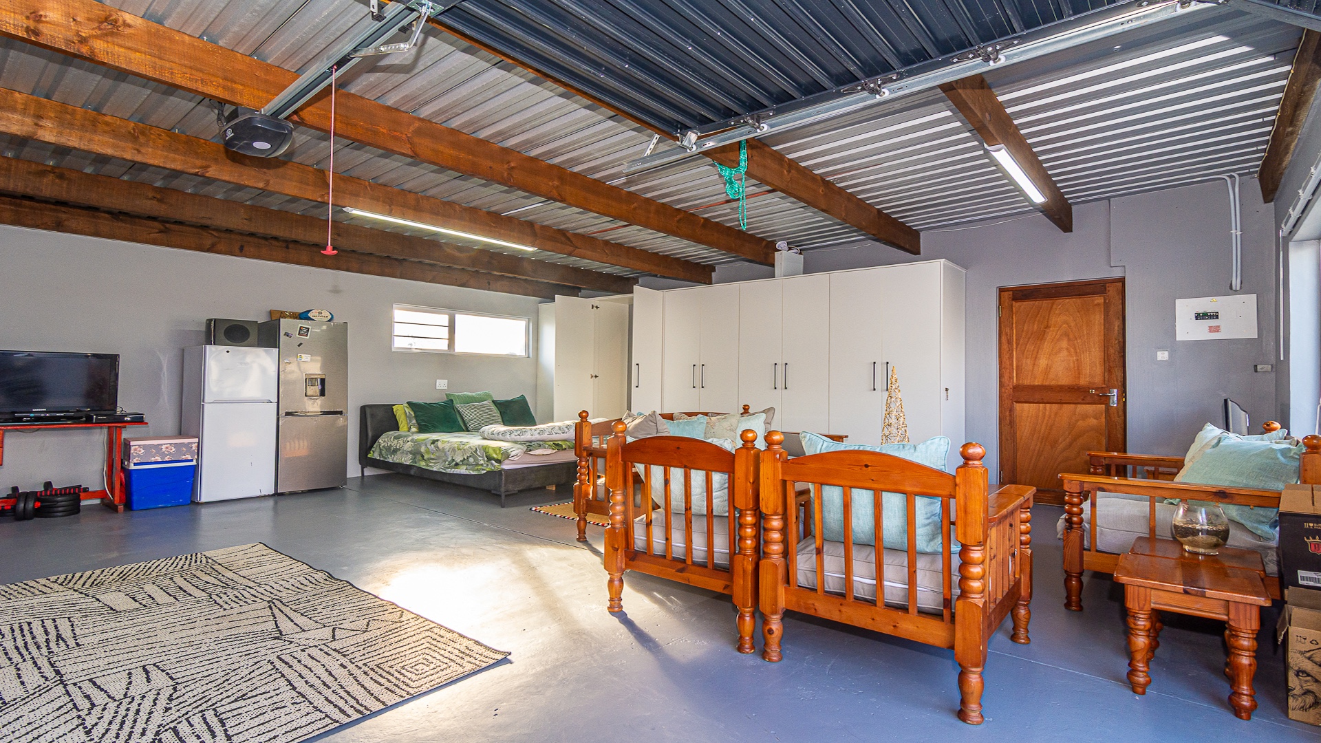 -Two garages, the second being an extra-large garage the size of a standard double – easily convertible into a self-contained flatlet with existing built-in cupboards and en-suite bathroom (shower, basin, toilet).