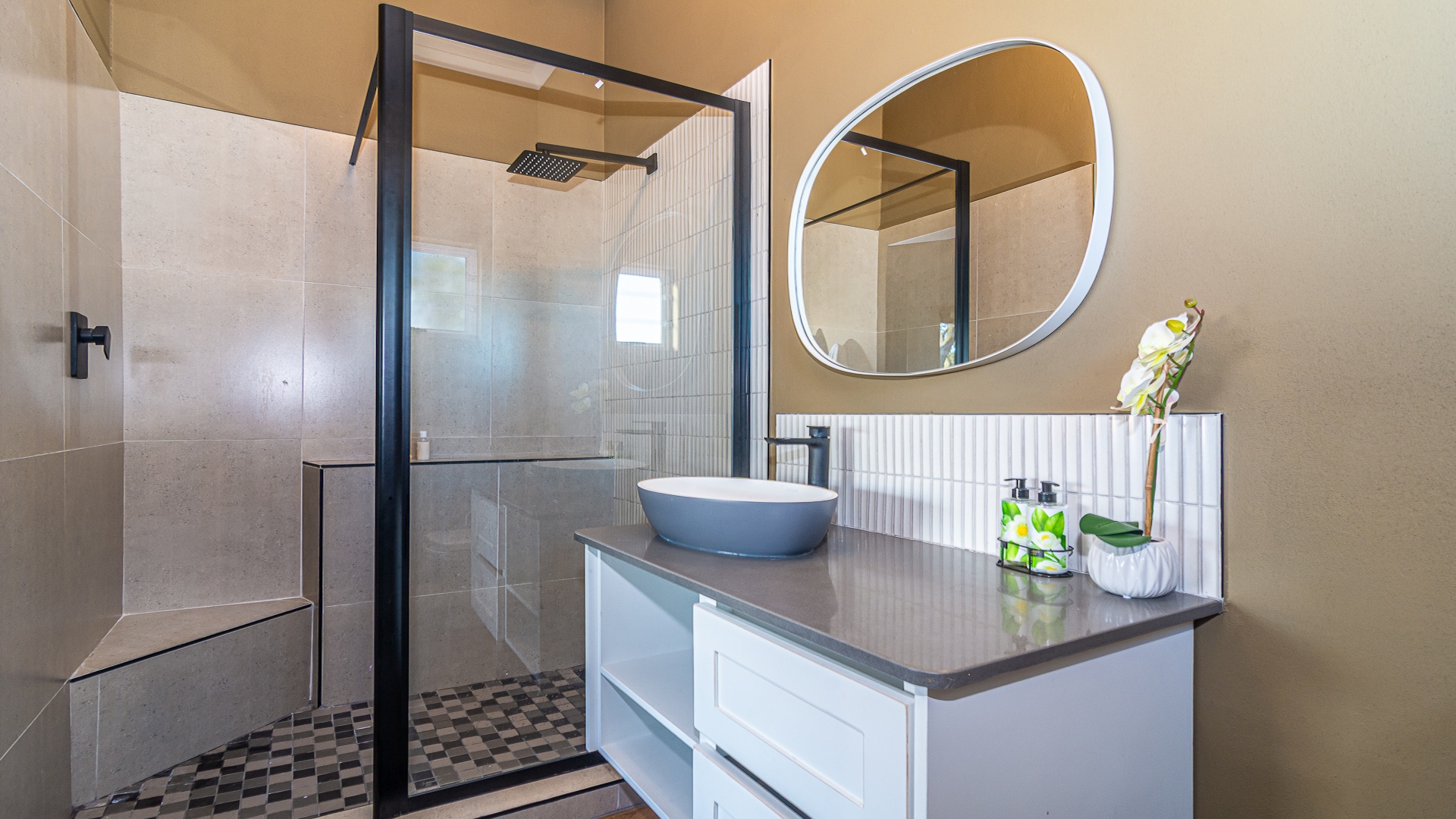 - Spacious open-plan living: A warm and welcoming entrance leads into a beautifully designed living, dining and braai area that flows seamlessly into a modern kitchen.