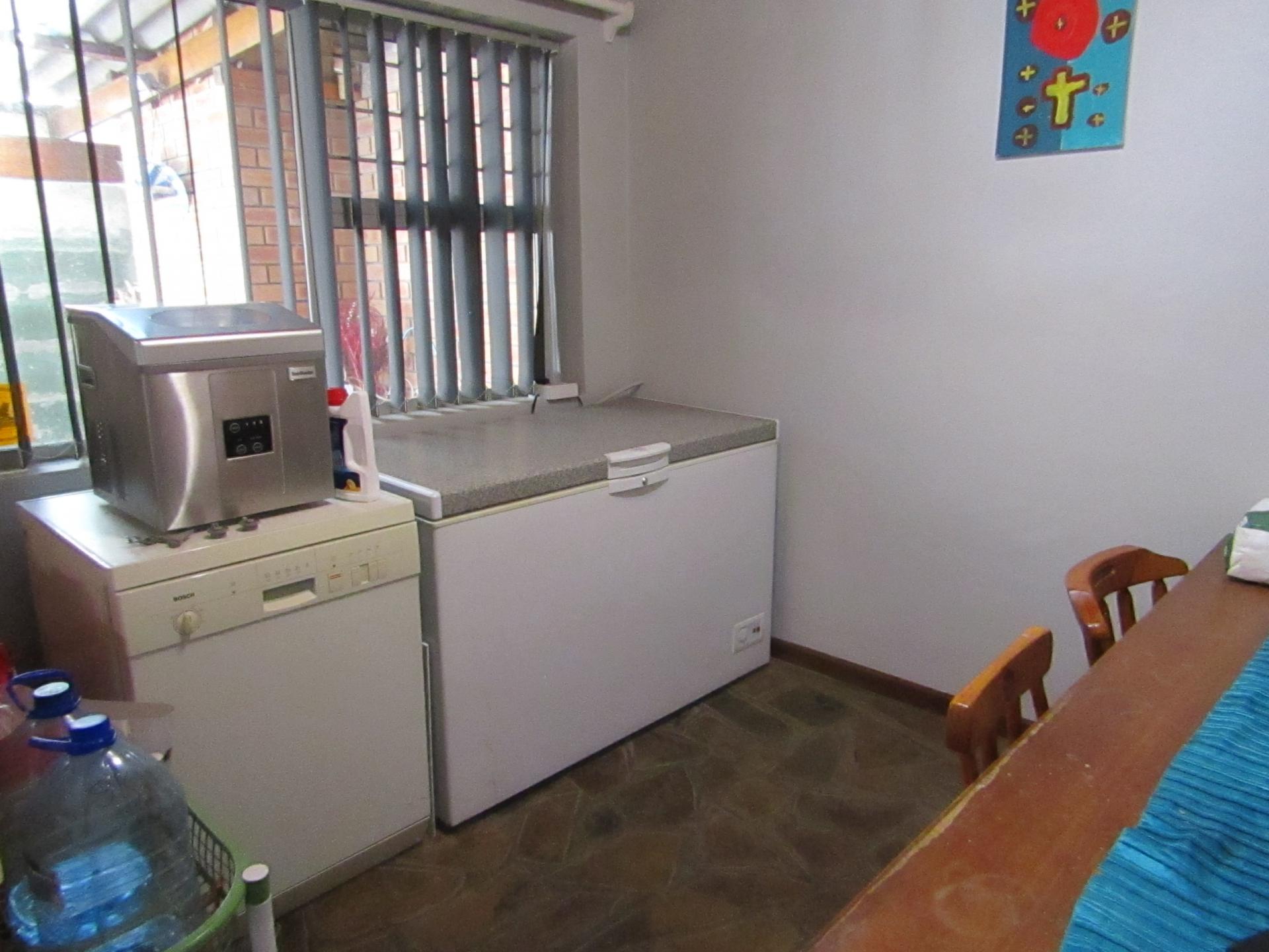 The main dwelling has three bedrooms, 2 bathrooms, kitchen/dining area, lounge, braai room, laundry and single garage with direct access to the house. You also have an enclosed patio with built-in braai. To the exterior you have a large covered patio area. The internal floor finishes portray lovely slated areas.