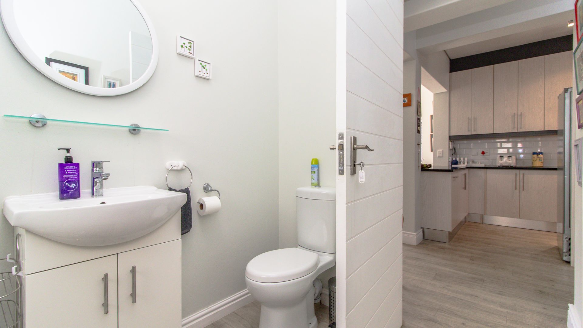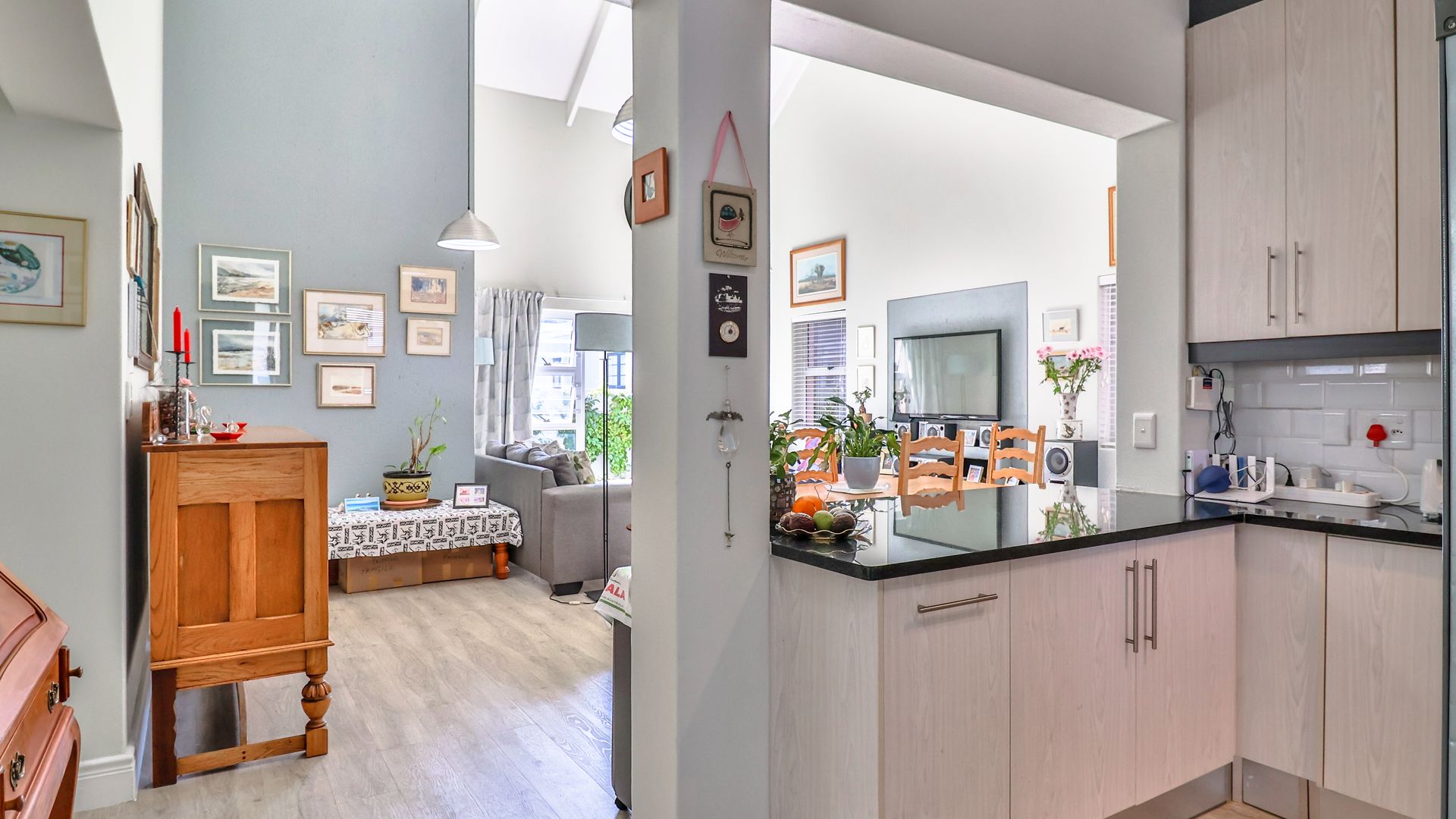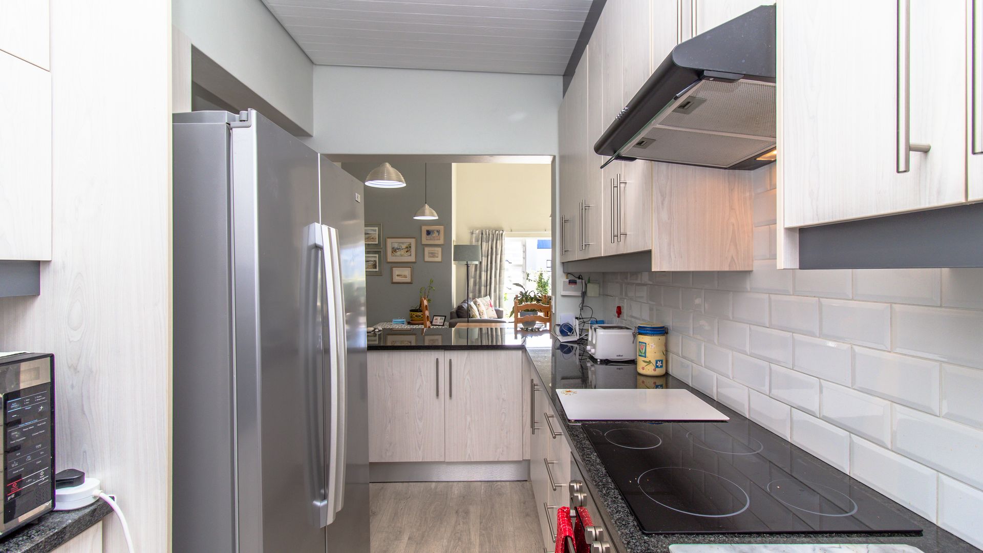 The light-filled, open-plan lounge, dining area with fireplace, and kitchen flow seamlessly onto an enclosed patio with a built-in braai, leading to a low-maintenance back garden, your sunny sanctuary. The spacious master bedroom features an en-suite bathroom, while the other two bedrooms share a well-appointed guest bathroom. The garage offers direct access to the home and is fitted for laundry appliances.