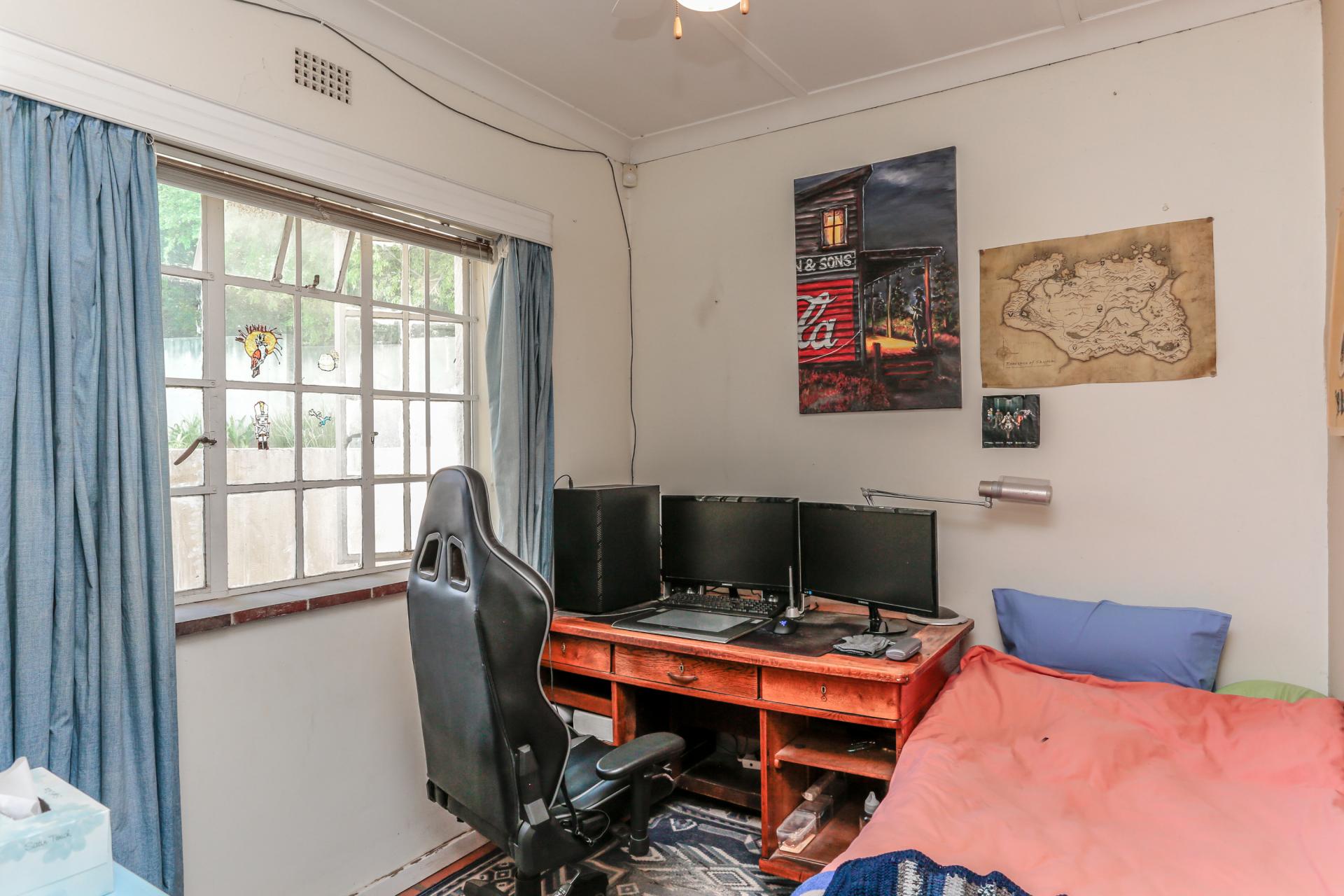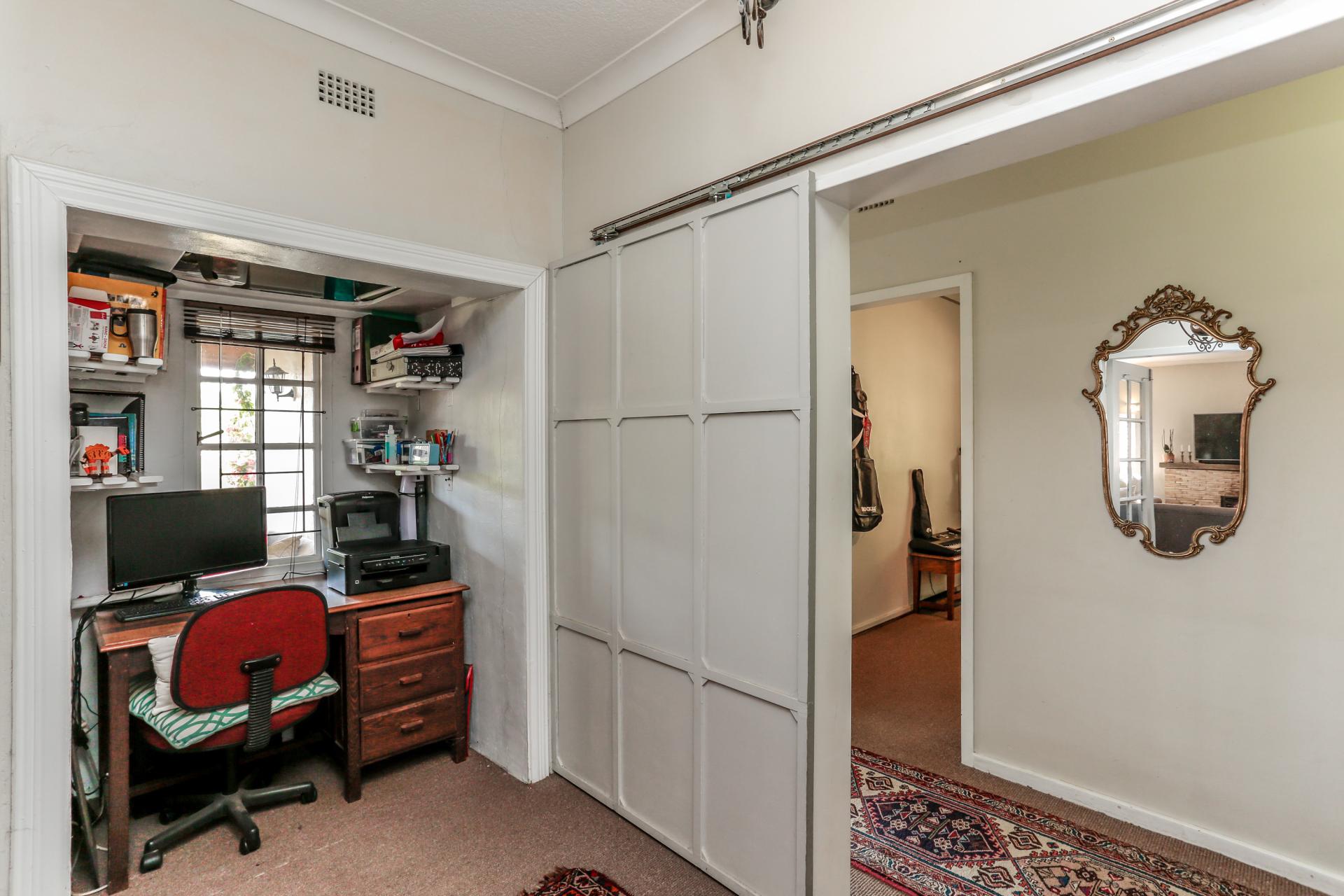 Outside, a cottage offers a bedroom, bathroom, sitting area, and a convenient kitchenette. The large back garden features a sparkling pool and a spacious lawn area, perfect for outdoor activities and relaxation. For those with expansion in mind, there is an option to create a larger cottage by incorporating the staff quarters and a large workshop. Additionally, the potential to expand upwards into the roof, creating a double-story or a spacious loft room, allows for endless possibilities.