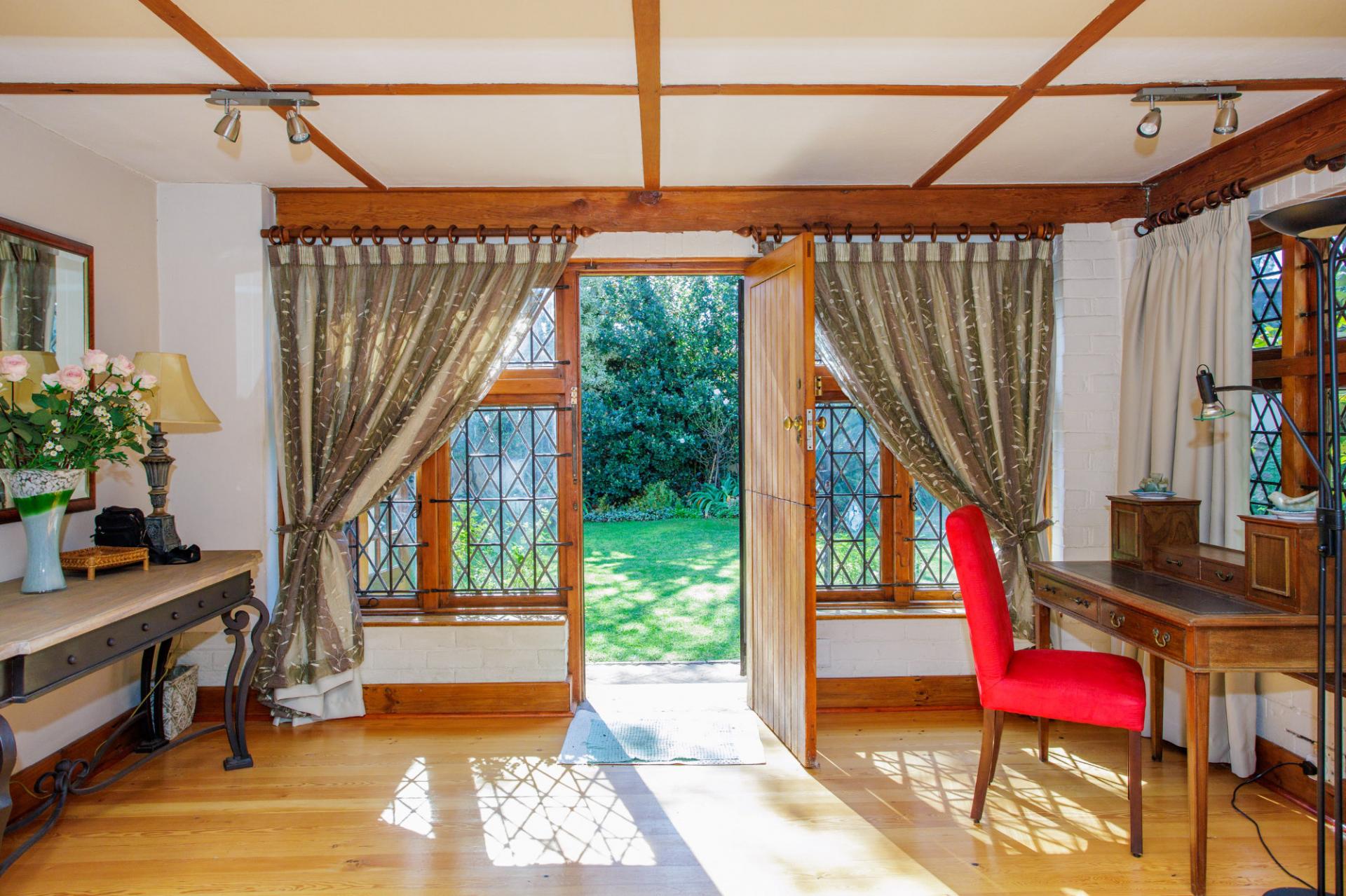 The spacious layout has an inviting entrance, a lounge, a formal dining room, and a family room with expansive picturesque windows that frame the lush garden views. There are three generously sized bedrooms, with the main bedroom featuring an en-suite bathroom. A second bathroom complements the living spaces.