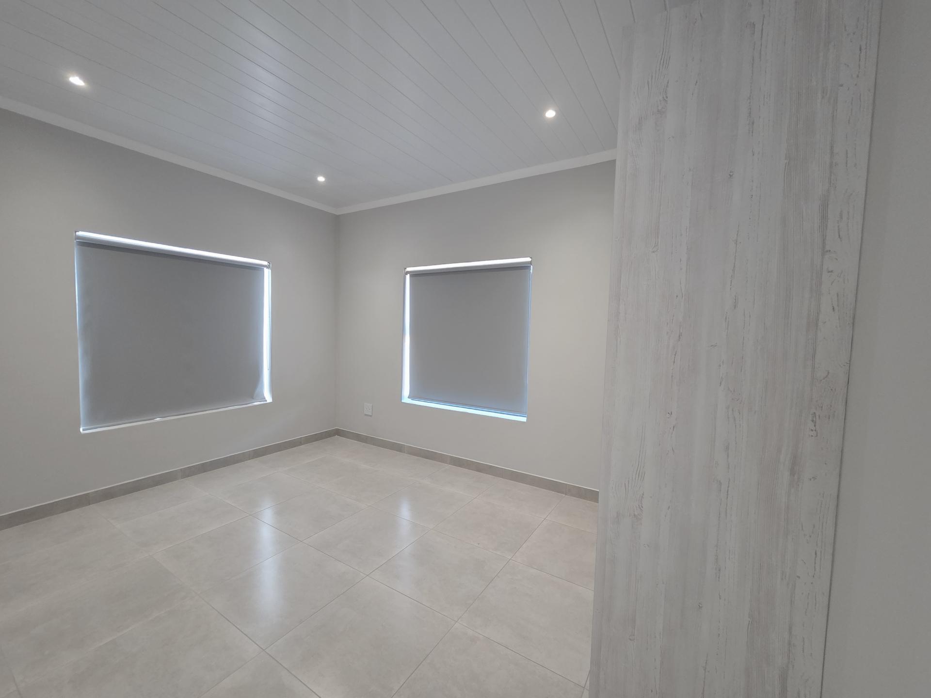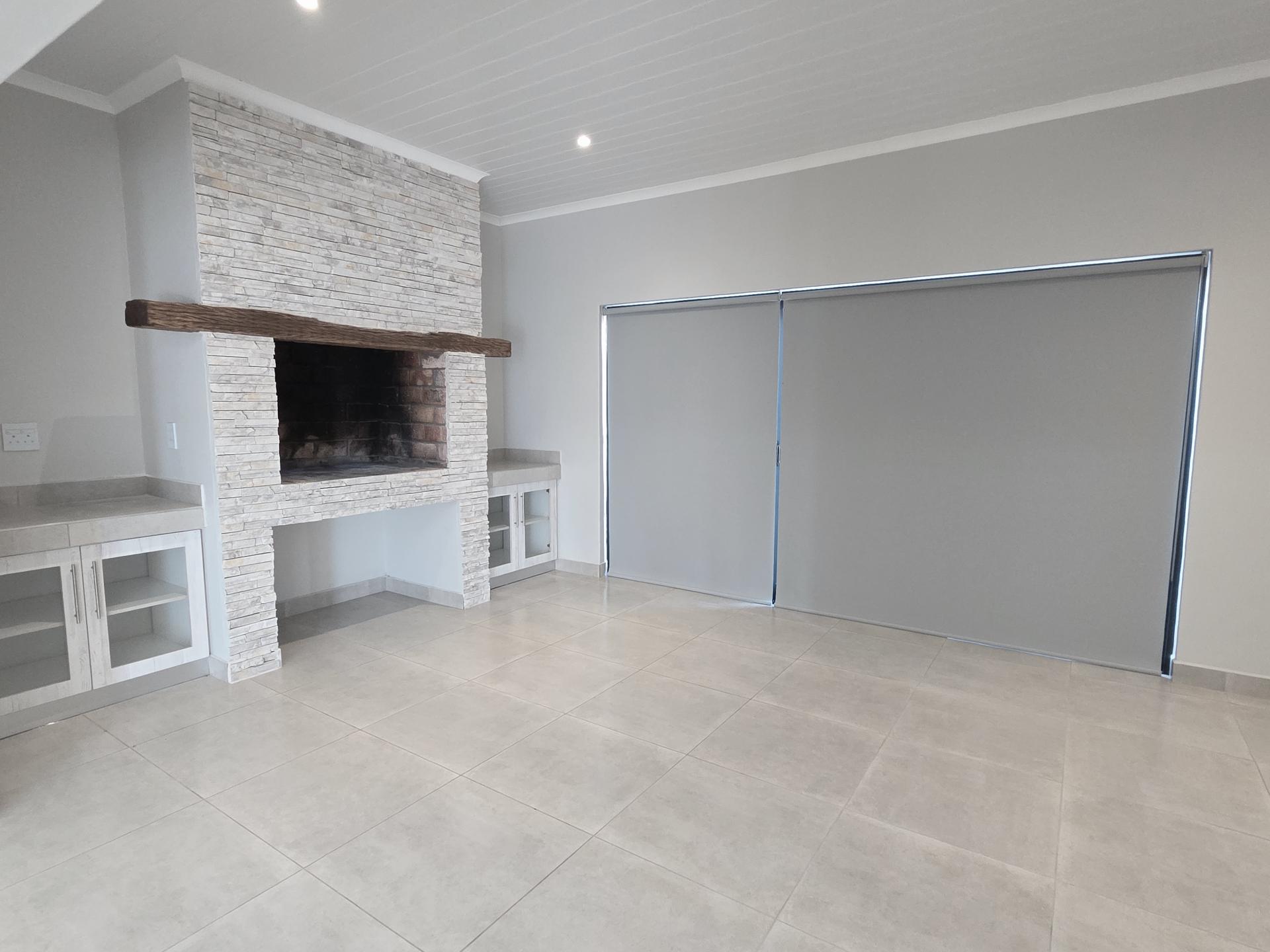 Designed for effortless entertaining, the dining area features a cozy indoor fireplace and flows into a dedicated braai room. Stacker doors open up to a beautifully landscaped, low-maintenance yard adorned with natural stonework.