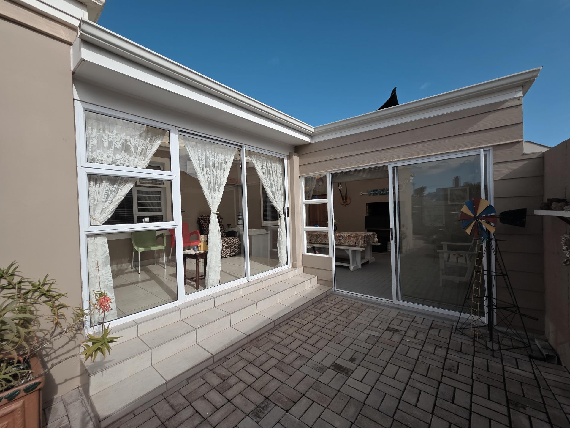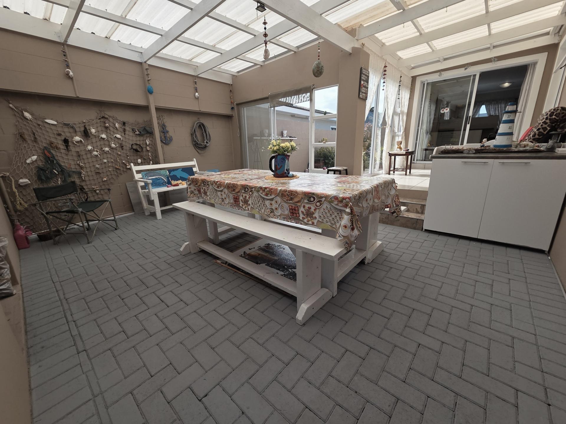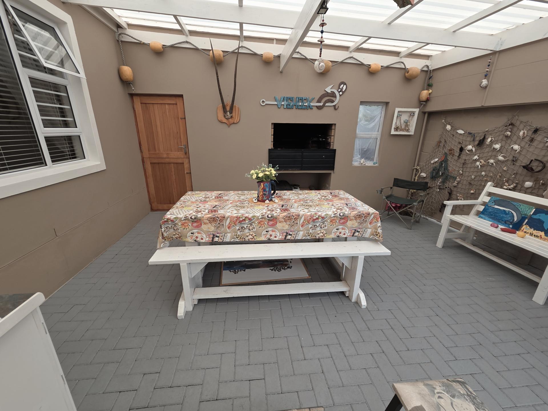 Outside, a covered patio with a built-in braai invites you to enjoy laid-back afternoons with friends and family. The manicured garden, complete with lush green lawn, is perfect for children, pets, or simply enjoying the fresh Langebaan breeze.