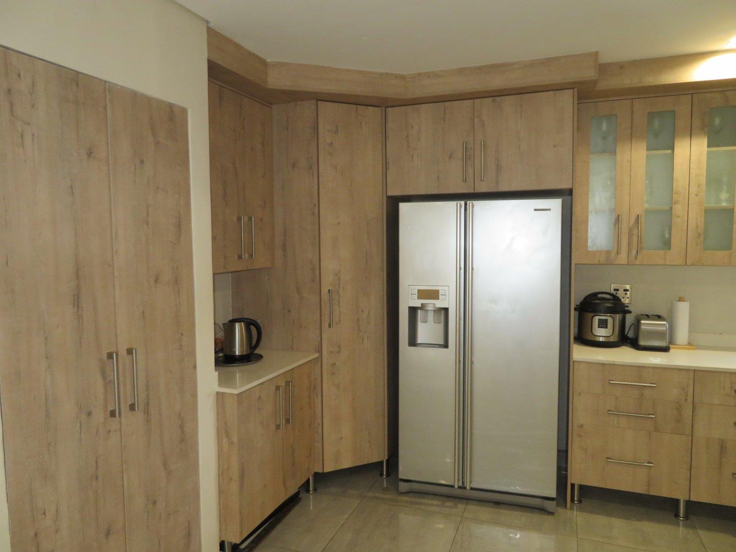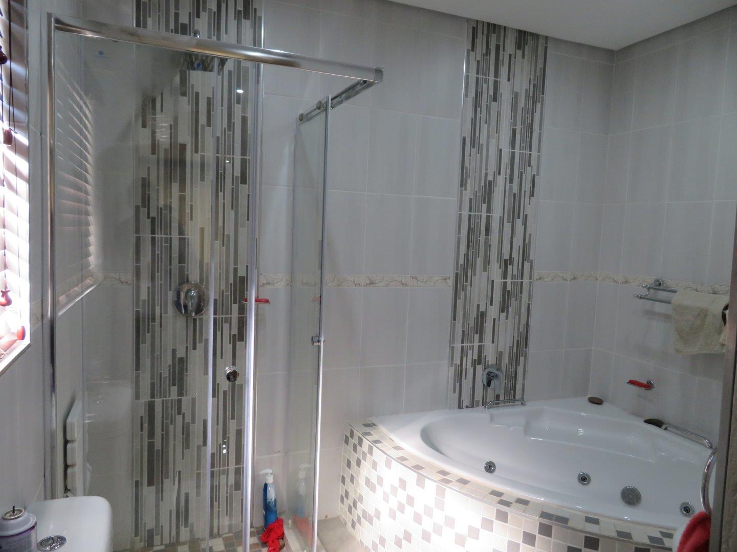 3 Bedroom, 2 bathrooms. double garage attached to the house. Main bedroom with full en-suite bathroom and door to external patio. Room 2 has door leading to patio, bathroom 2 is full bathroom that service 2 other rooms and used as guest bathroom. Open plan living /dining room and kitchen, scullery at back of kitchen. Air conditioning installed in main bedroom, room 2 and living area. Door from kitchen lead to back patio with covered braai area. External laundry area partially covered. Garden fitted with manual irrigation system