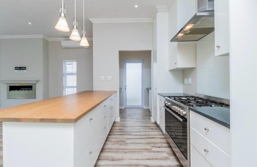 Designed to embrace natural light and open-plan living, the home welcomes you with a stylish kitchen and scullery that flow effortlessly into the dining and lounge areas. Expansive stackable glass doors extend the living space onto a private entertainment area with a built-in braai, creating the ideal setting for relaxed gatherings or quiet moments of reflection. The bordering greenbelt adds a sense of space and additional space for the little ones to enjoy time outdoors. The double garage with direct access to the kitchen adds convenience, ensuring a stress-free, lock-up-and-go lifestyle.