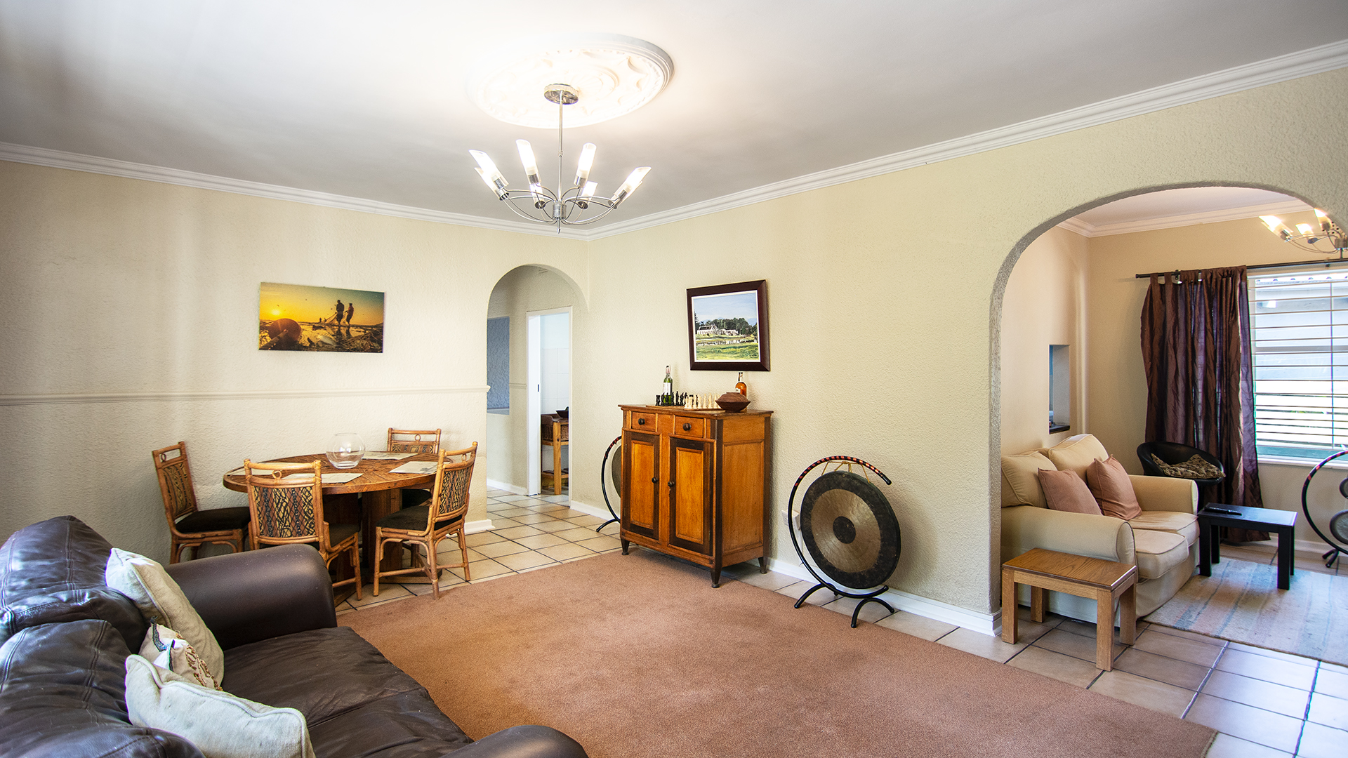 As you enter, you are welcomed into a warm and inviting living area, with enough space to accommodate both a dining room and lounge. A cozy adjoining area makes the perfect TV lounge or snug.