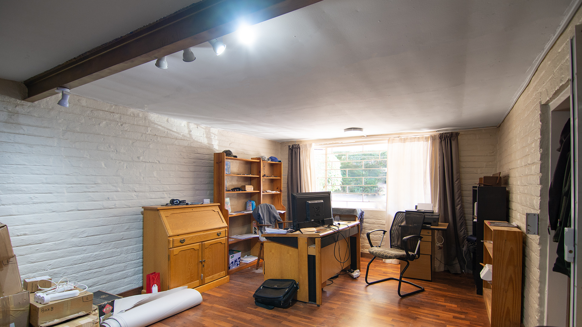 Down a short flight of stairs, you’ll find a versatile additional room — ideal as a home office, creative studio, or children’s playroom.