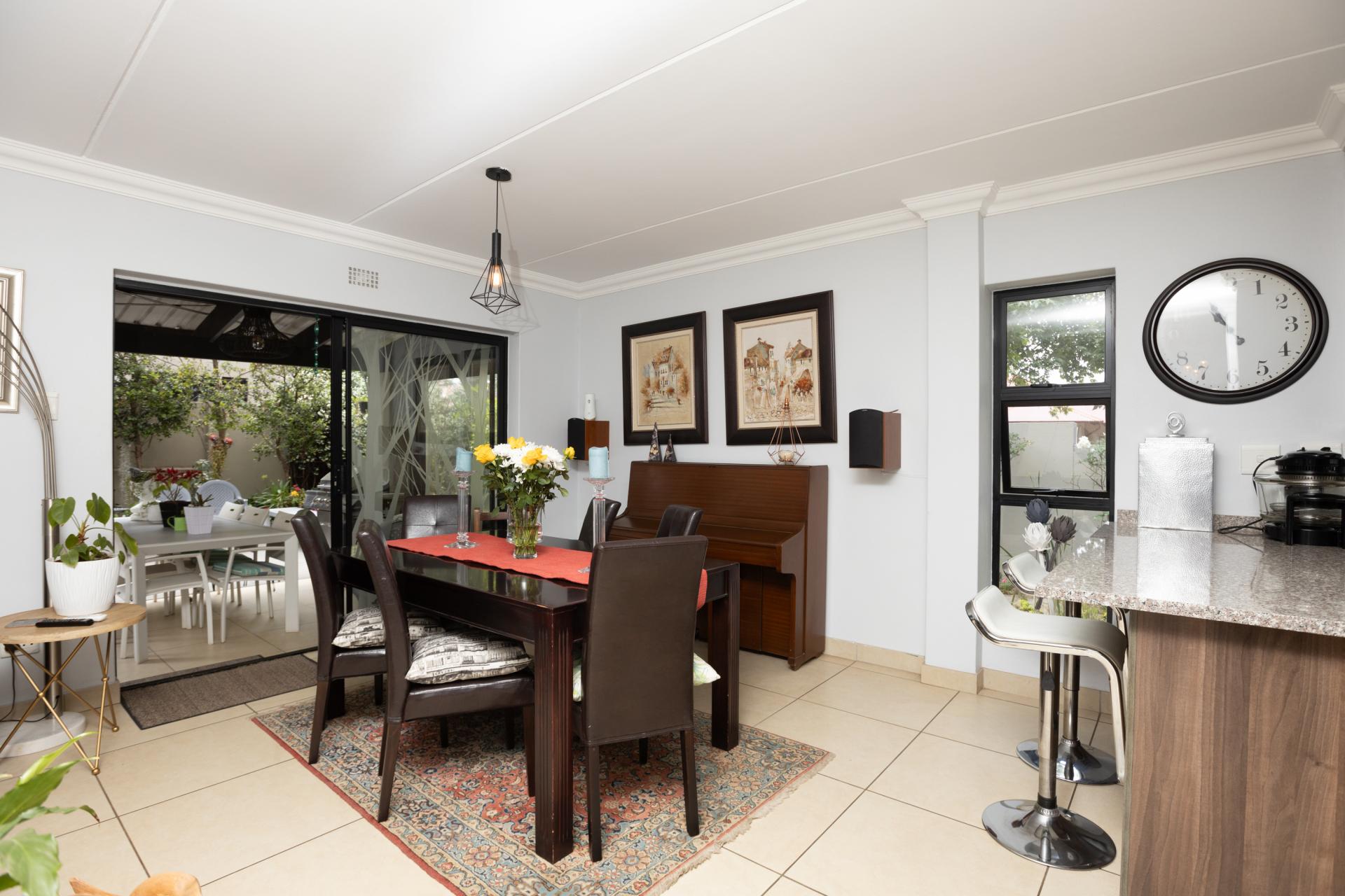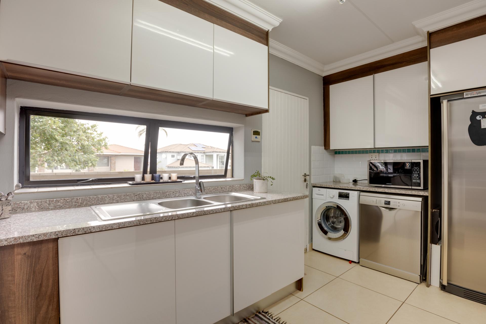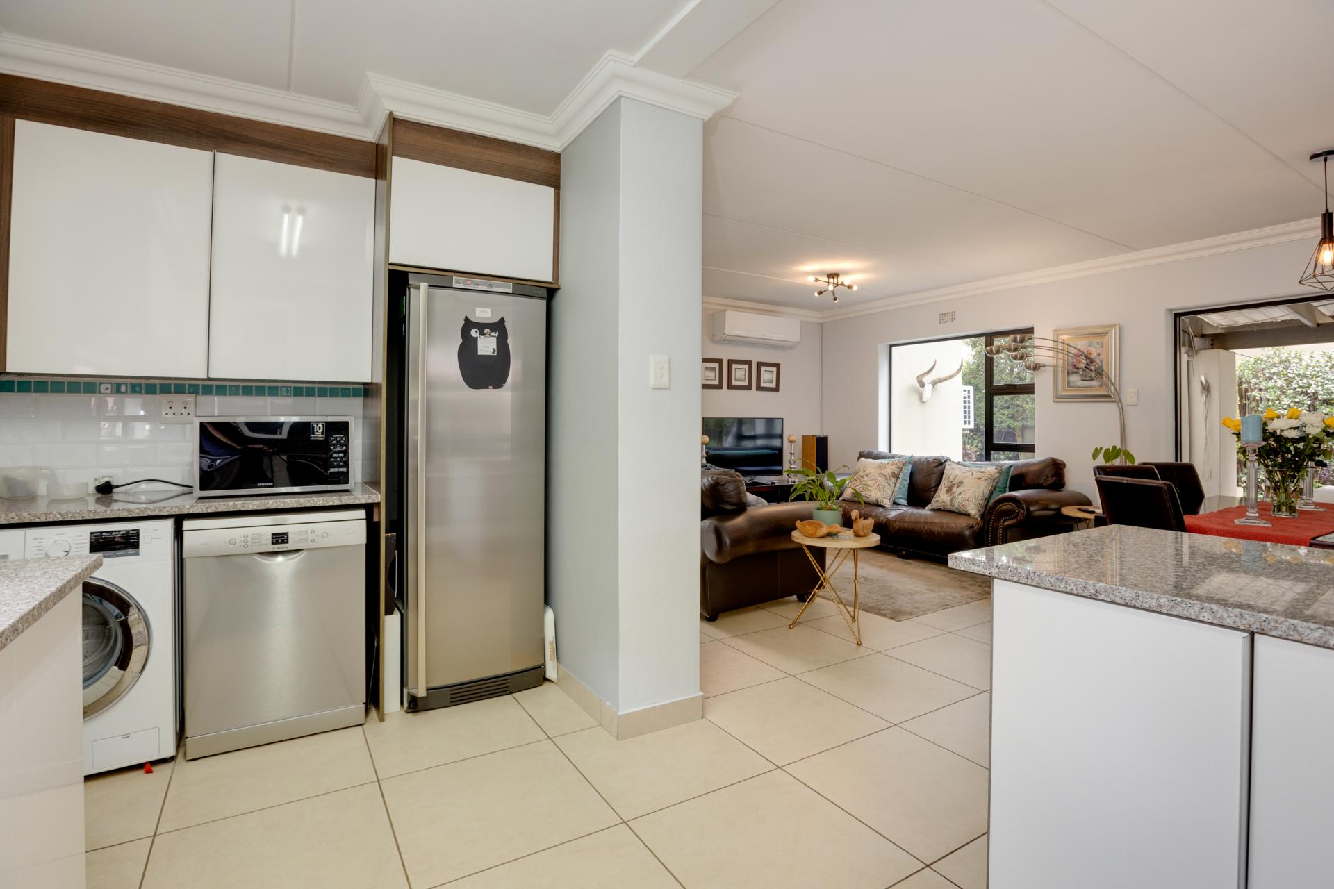 Nestled within the sought-after Cedar Creek Security Estate, this beautiful sectional title home offers modern living with a touch of elegance. The spacious kitchen features chic two-tone cabinetry, abundant cupboard space, and stylish glass splashback tiles, bathed in natural light. With a cozy breakfast nook, it’s perfect for casual dining.