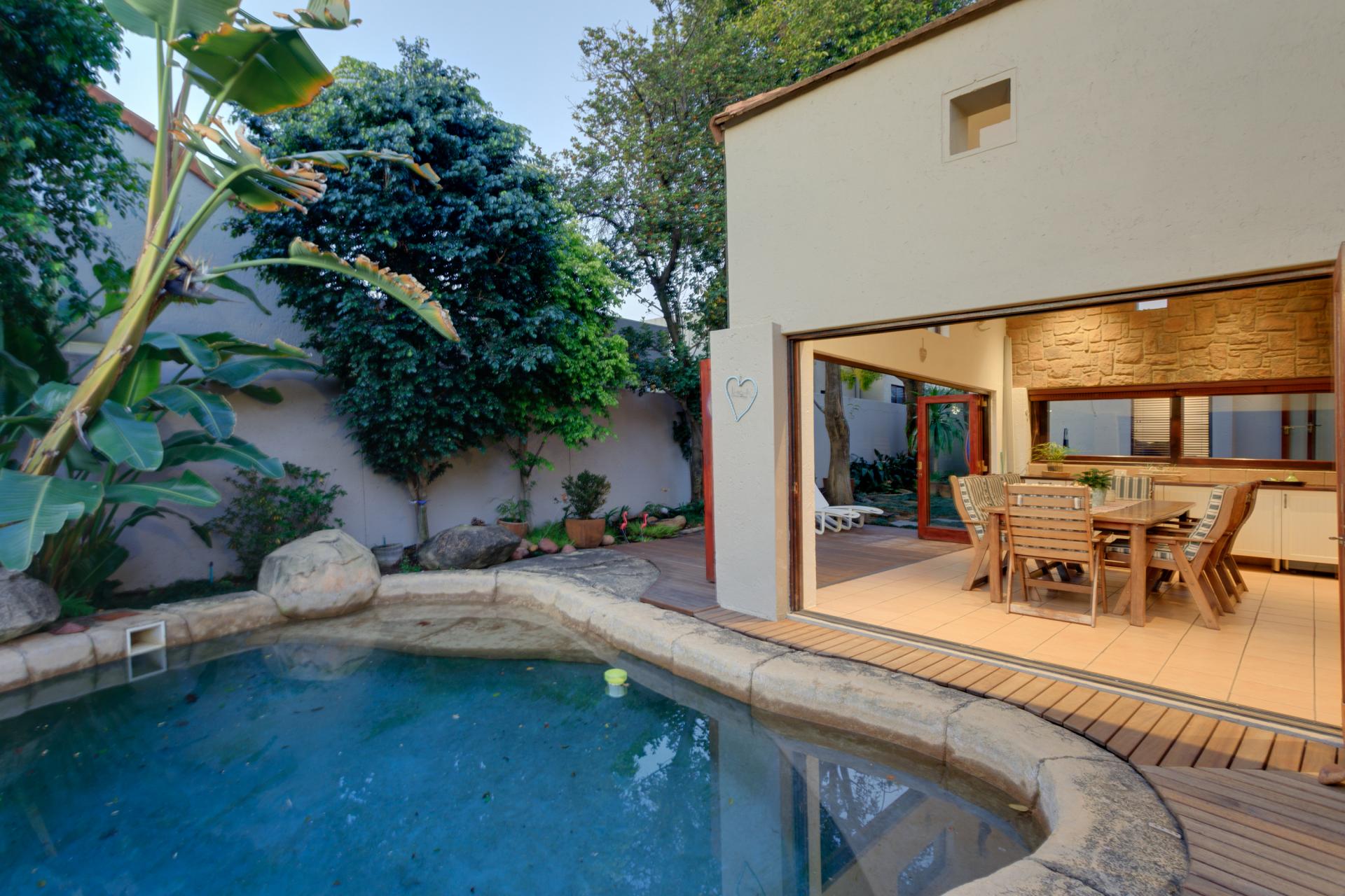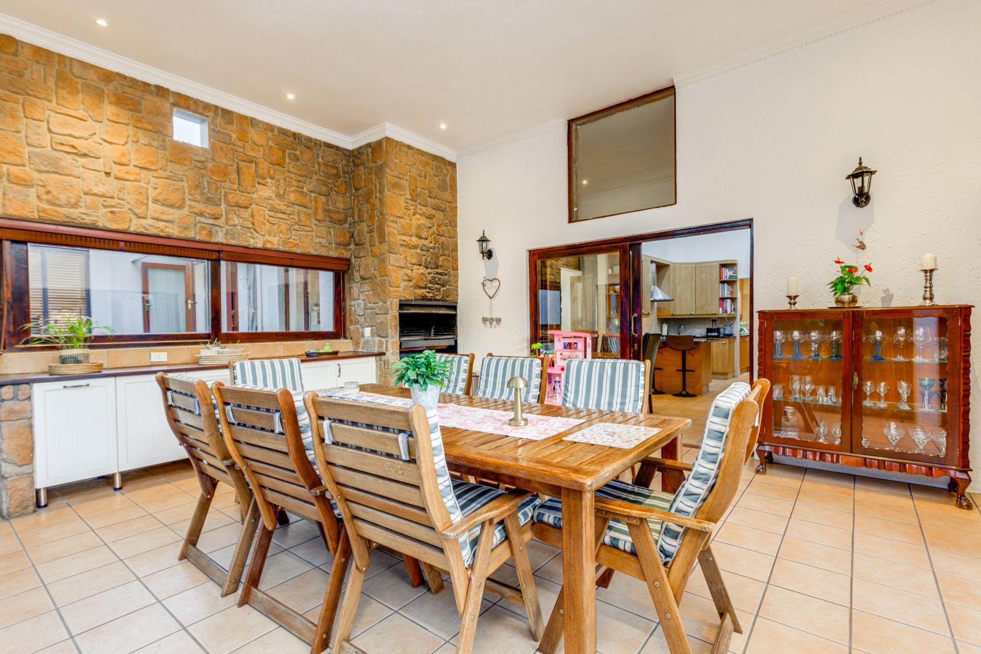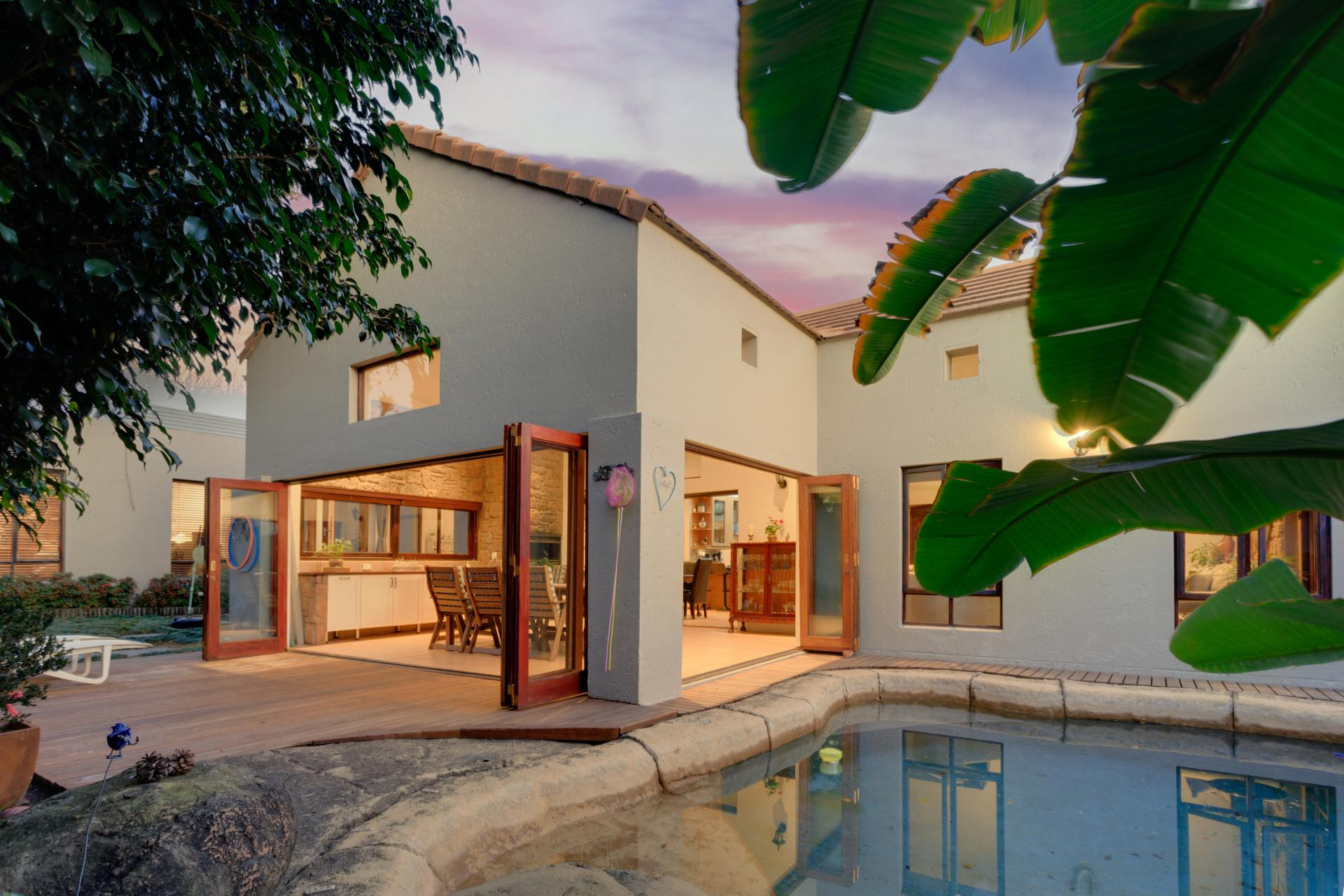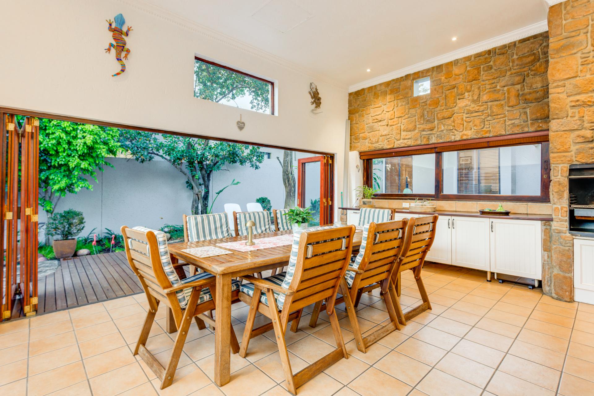 The undercover patio quickly becomes your favourite spot—ideal for everything from lively weekend braais to quiet evenings with loved ones. It overlooks a sparkling swimming pool and a meticulously maintained garden that offers total privacy and calm.