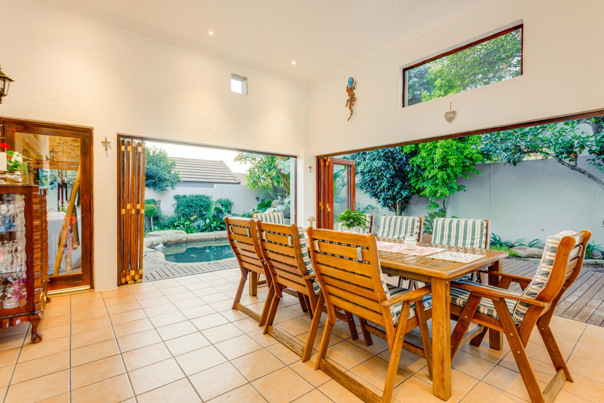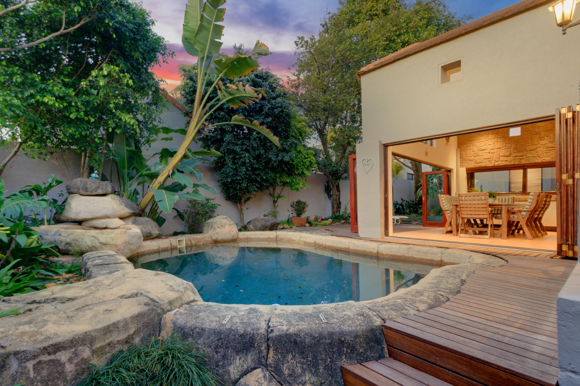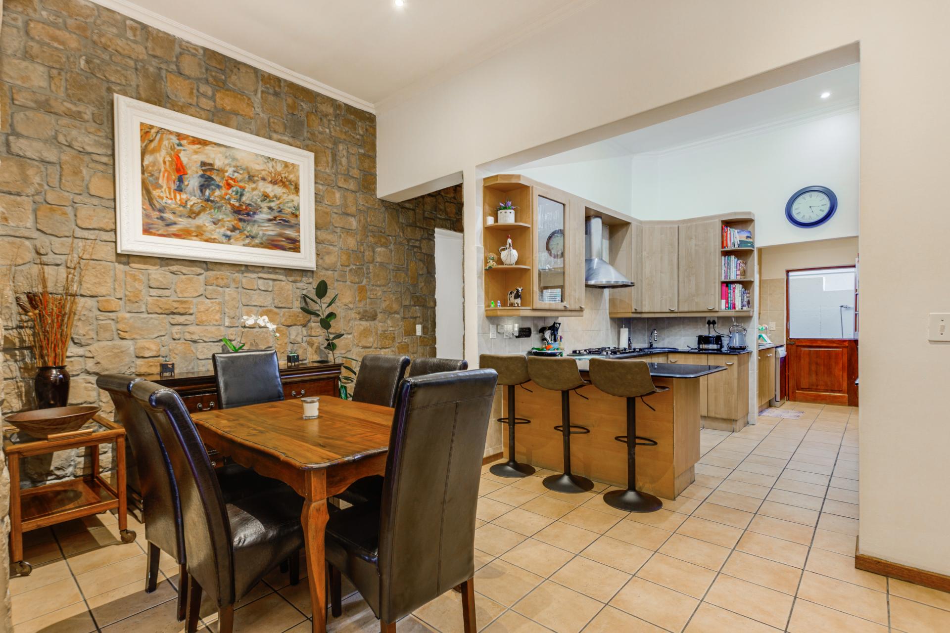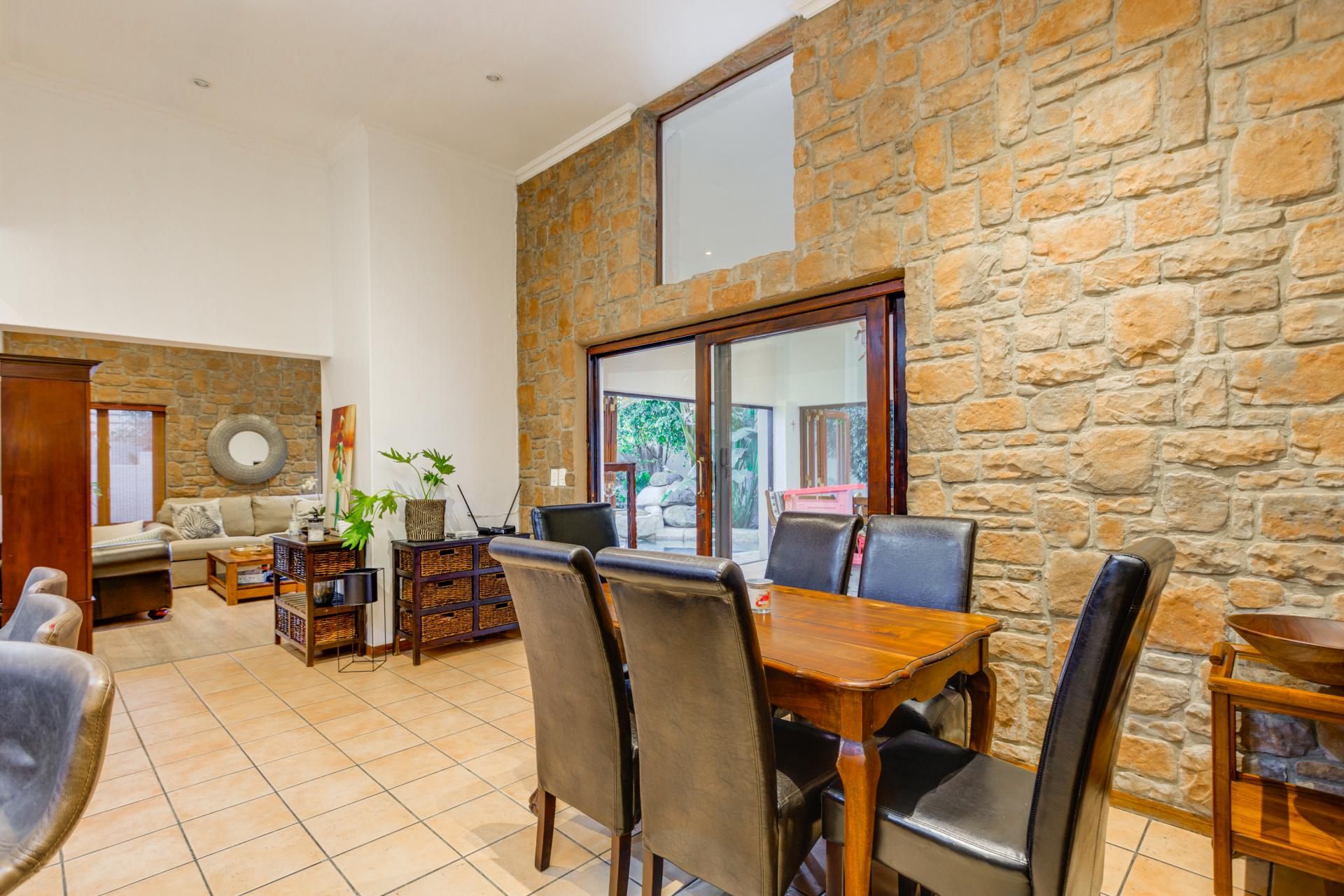 The undercover patio quickly becomes your favourite spot—ideal for everything from lively weekend braais to quiet evenings with loved ones. It overlooks a sparkling swimming pool and a meticulously maintained garden that offers total privacy and calm.