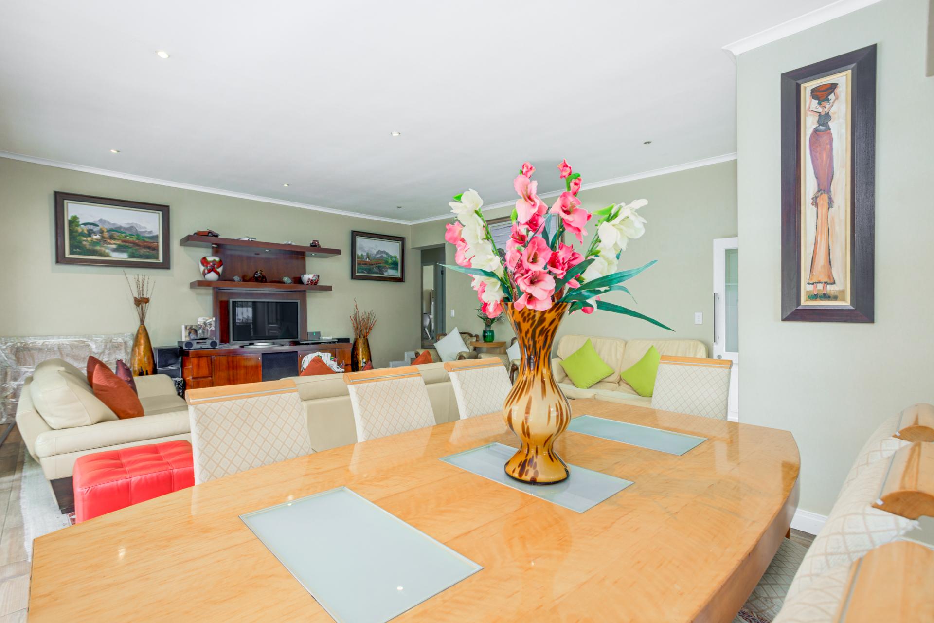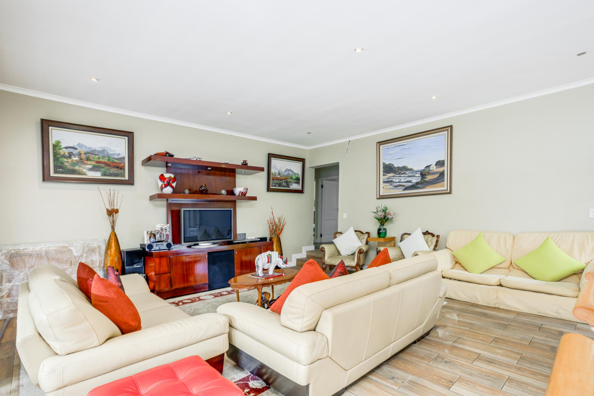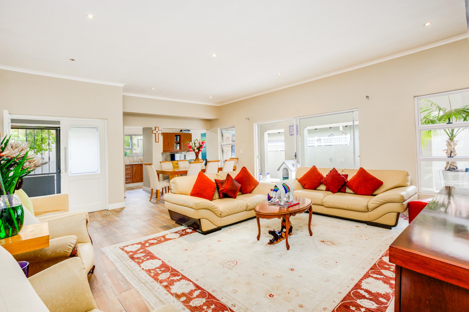 At the centre of the home is a cosy, light-filled formal lounge with double-volume ceilings, giving the space a sense of warmth and openness. The modern kitchen boasts granite countertops, a large breakfast bar, and space for all your essential appliances, including a double-door fridge.