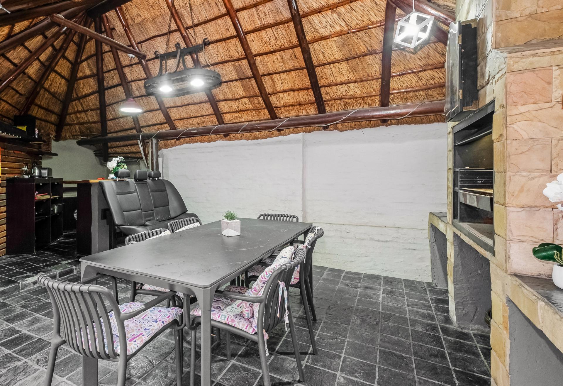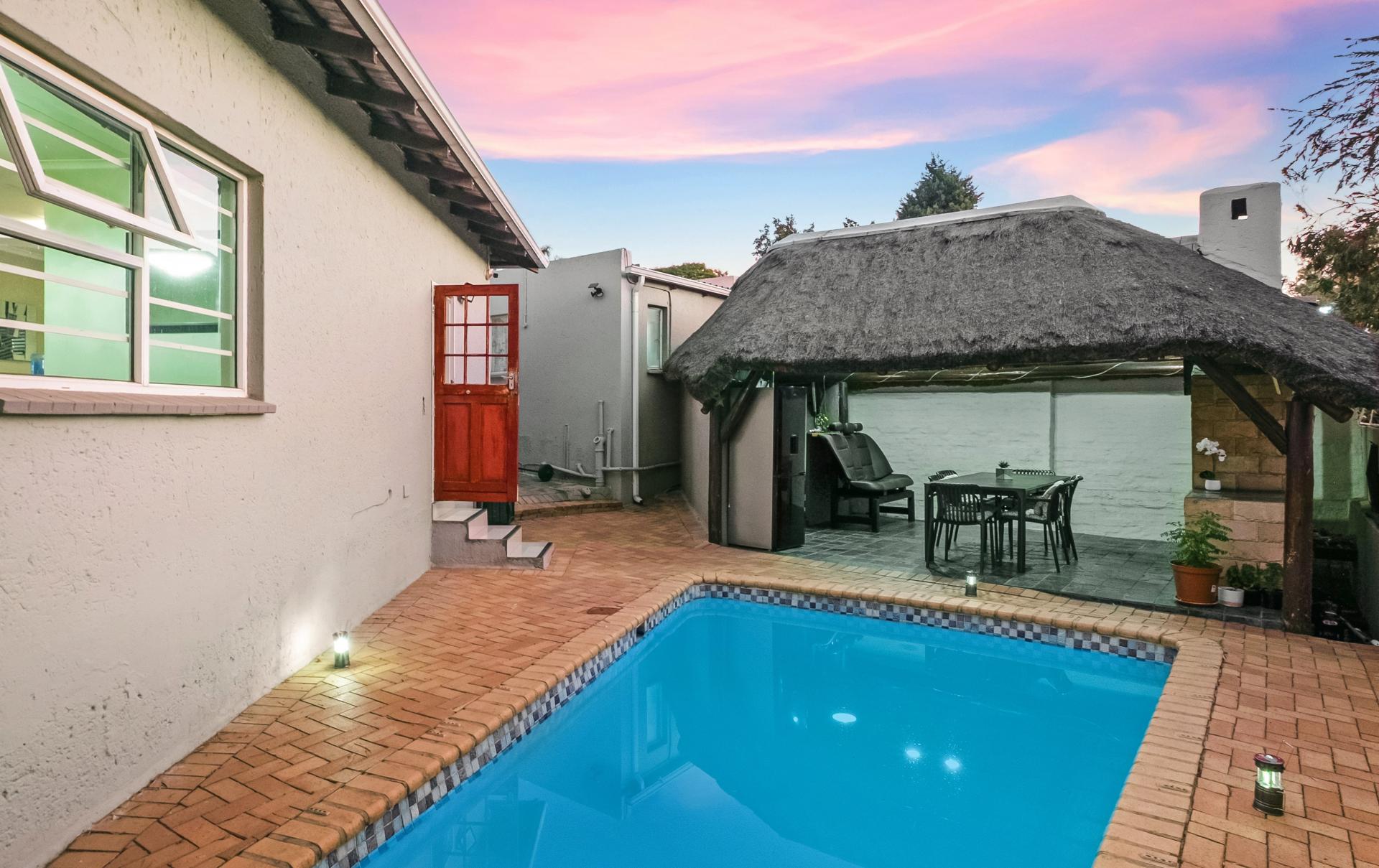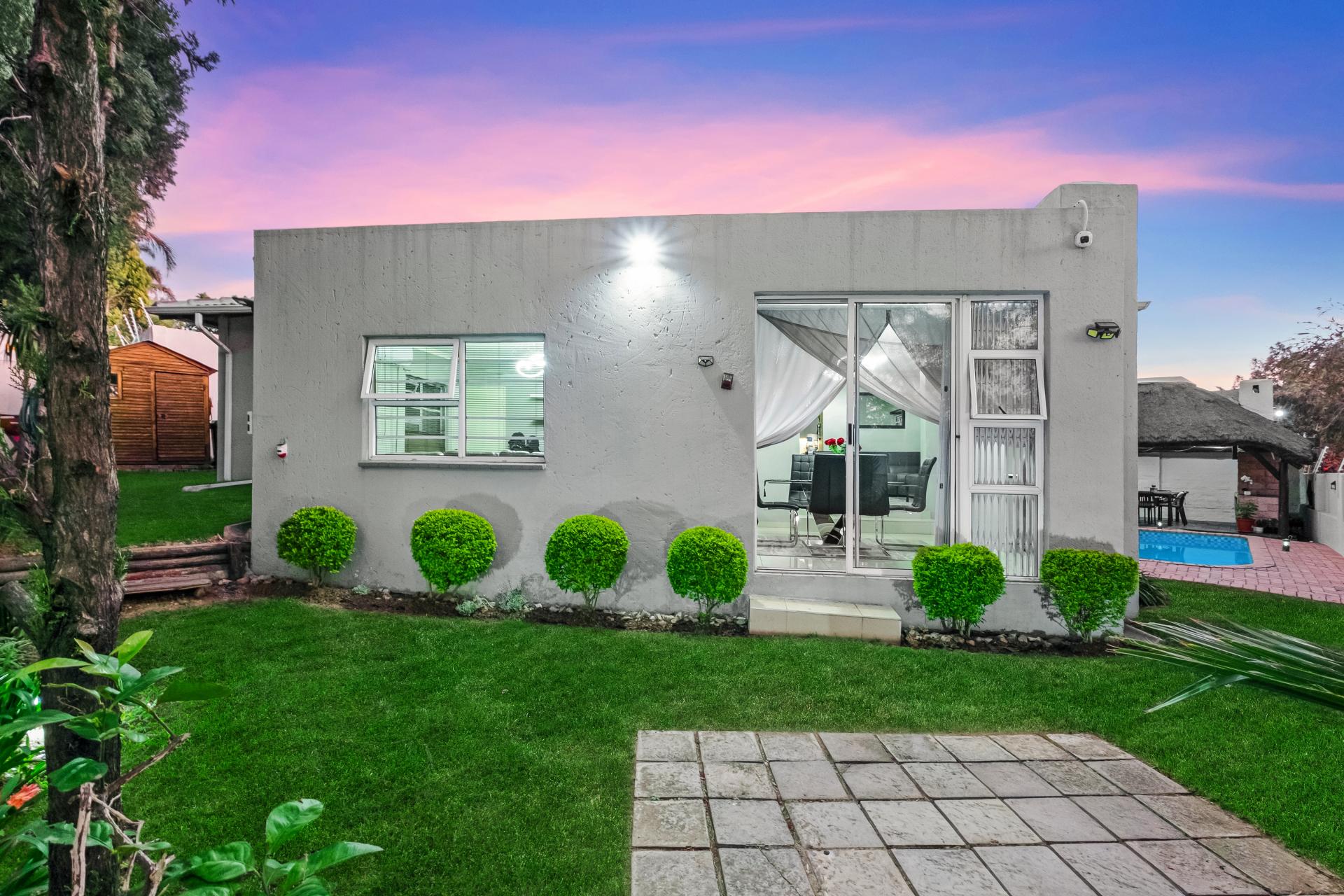 The outdoor living experience is every bit as impressive. A wrap-around, landscaped garden frames the home, offering multiple areas to relax, entertain, or simply soak in the tranquillity. At its centre, a sparkling swimming pool invites endless summer enjoyment, whether for family fun or hosting lively weekend braais. From morning coffee on the patio to peaceful evenings by the poolside, this home embodies the very best of indoor-outdoor living.
