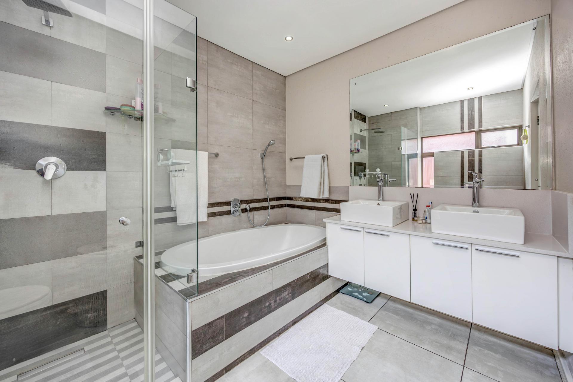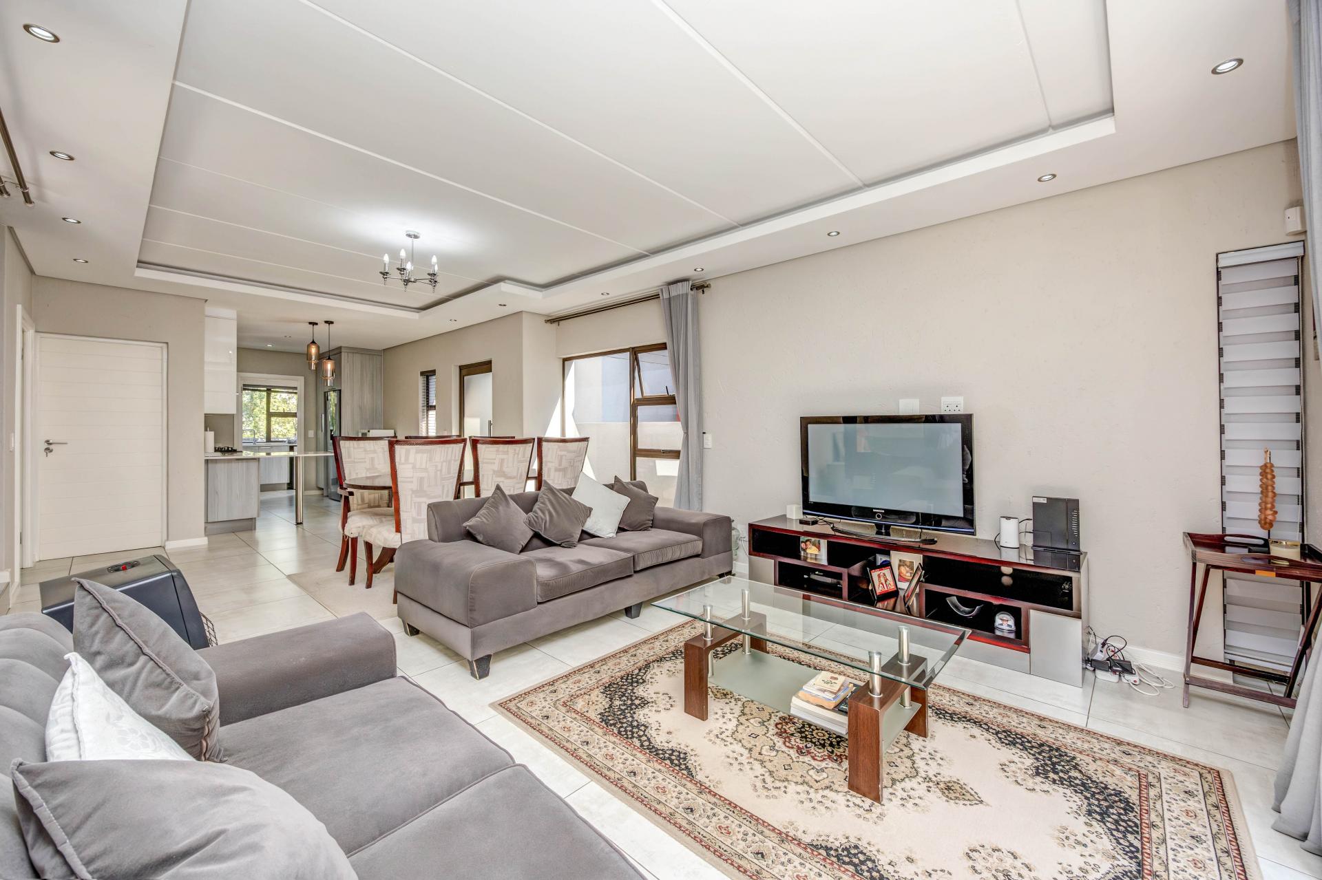 Step into modern comfort with this stunning double-storey home featuring 3 spacious ensuite bedrooms, a sleek kitchen with Bosch gas stove and scullery, and open-plan living spaces that flow effortlessly to a large undercover patio and wrap-around garden. A double garage with high ceilings, prepaid electricity, and thoughtful design details make everyday living both practical and stylish.