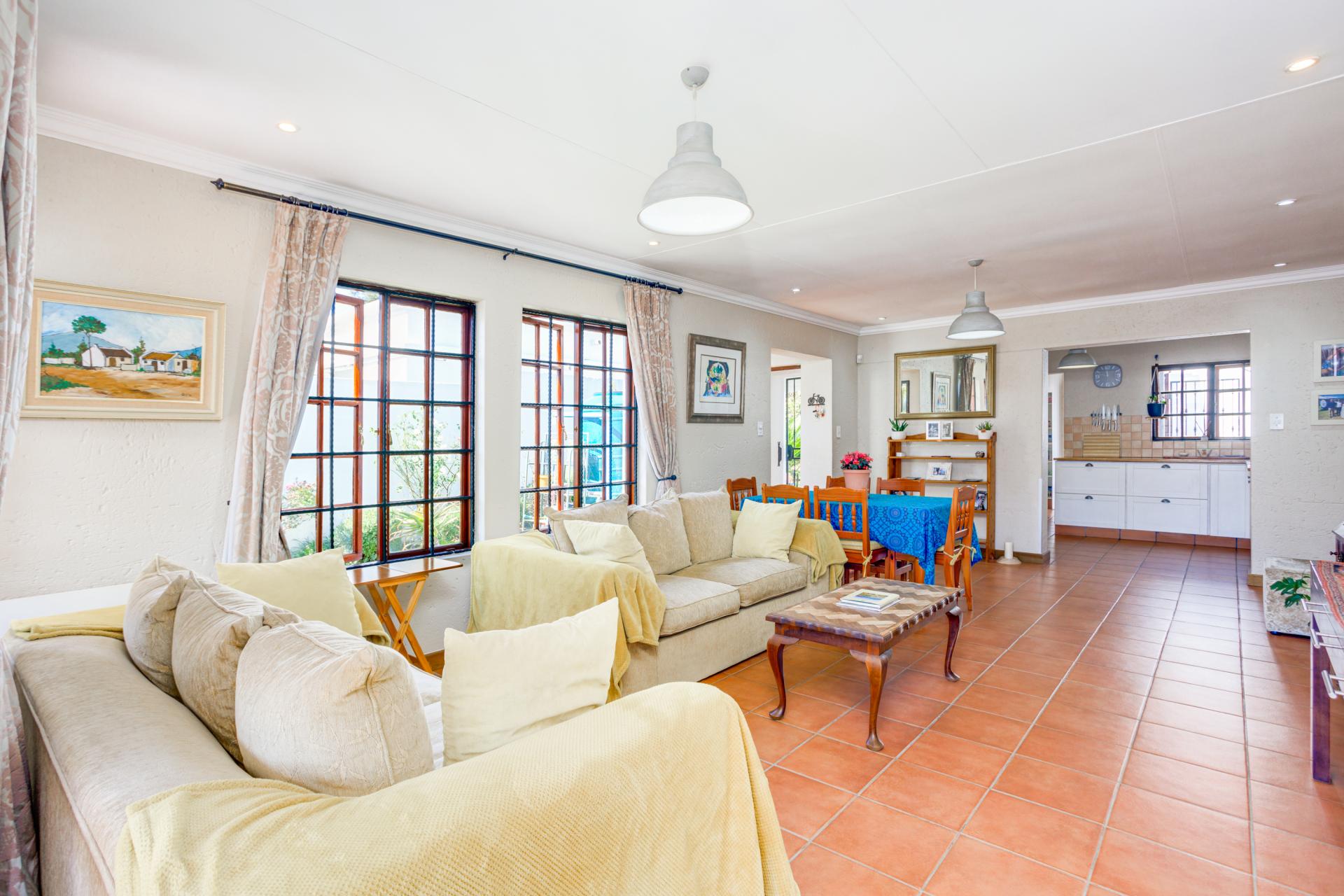 Featuring an open-plan kitchen with a separate scullery, the home flows seamlessly into a spacious family area that opens onto a covered patio which is ideal for entertaining. The well-maintained, low-maintenance garden is perfect for those who love outdoor living without the hassle.