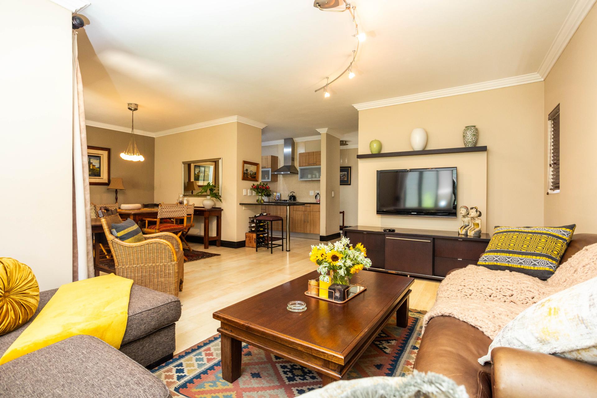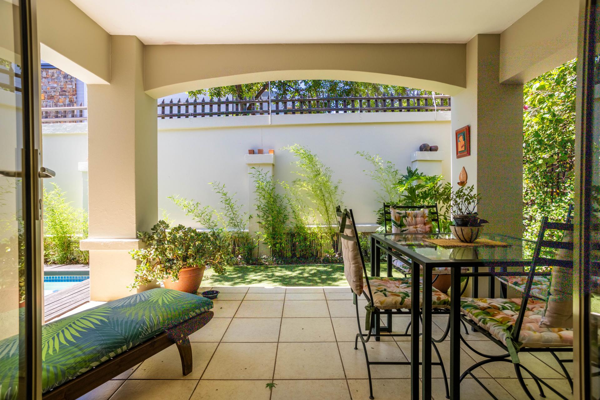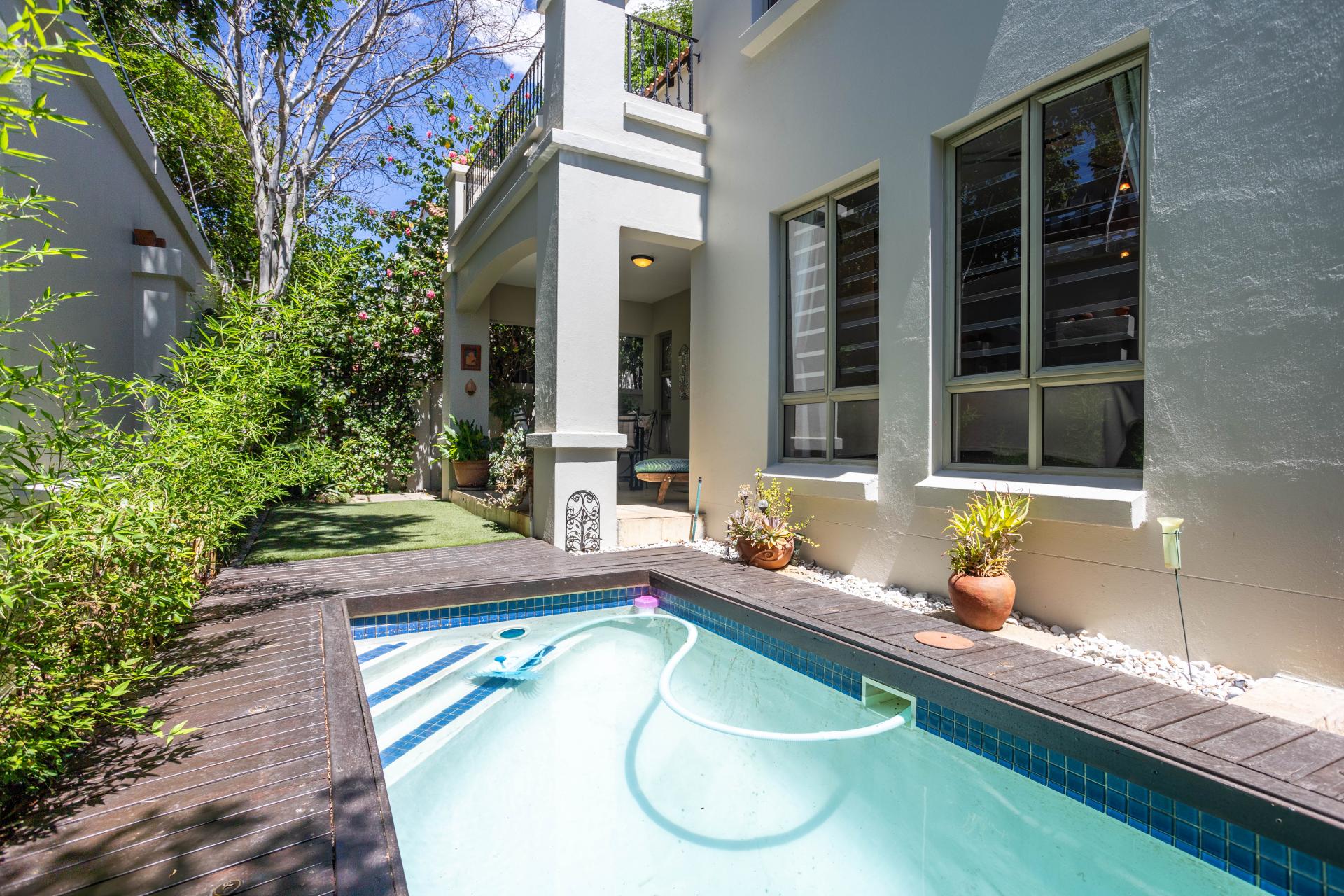 Enjoy the convenience of a double garage that opens directly into the home. The outdoor space includes a plunge pool and a landscaped, low-maintenance garden. Additional features include an inverter for load shedding and underfloor heating.