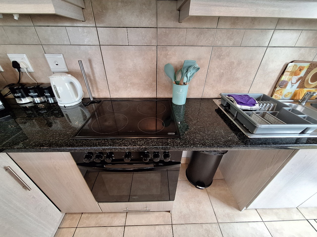 * Kitchen equipped with stove and oven, extractor fan, ample built-in cupboards and granite tops.