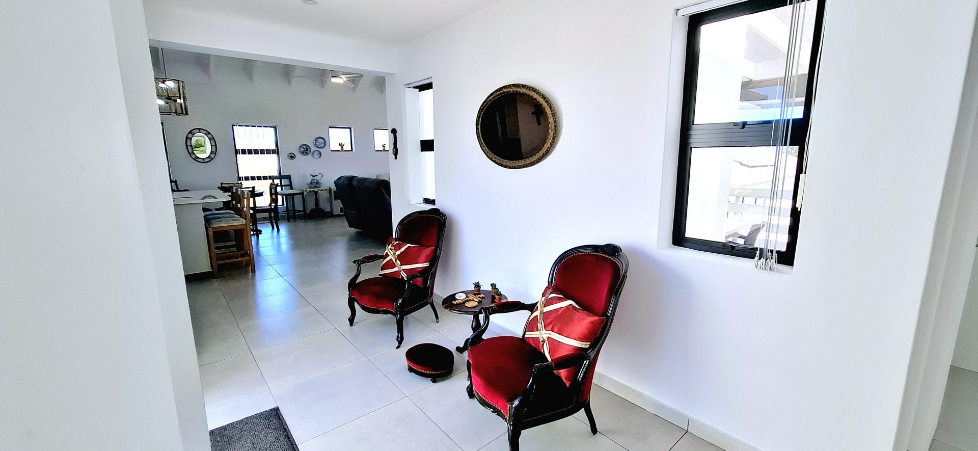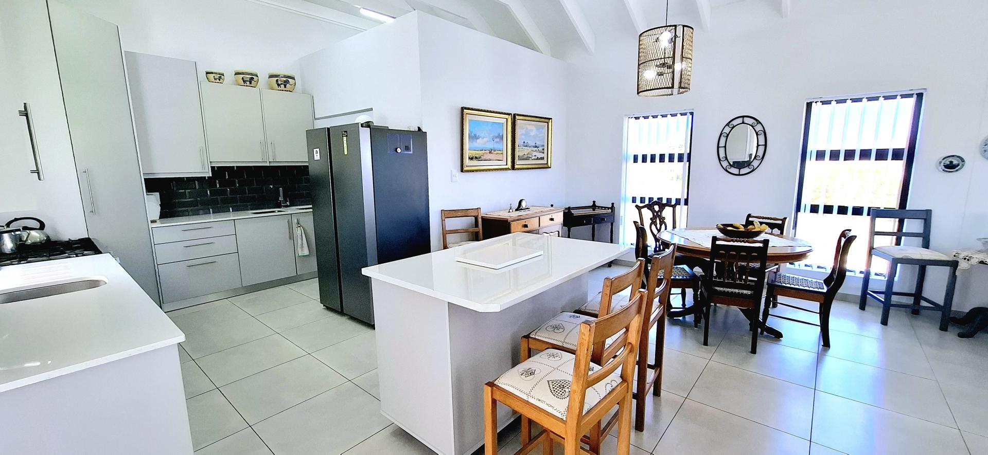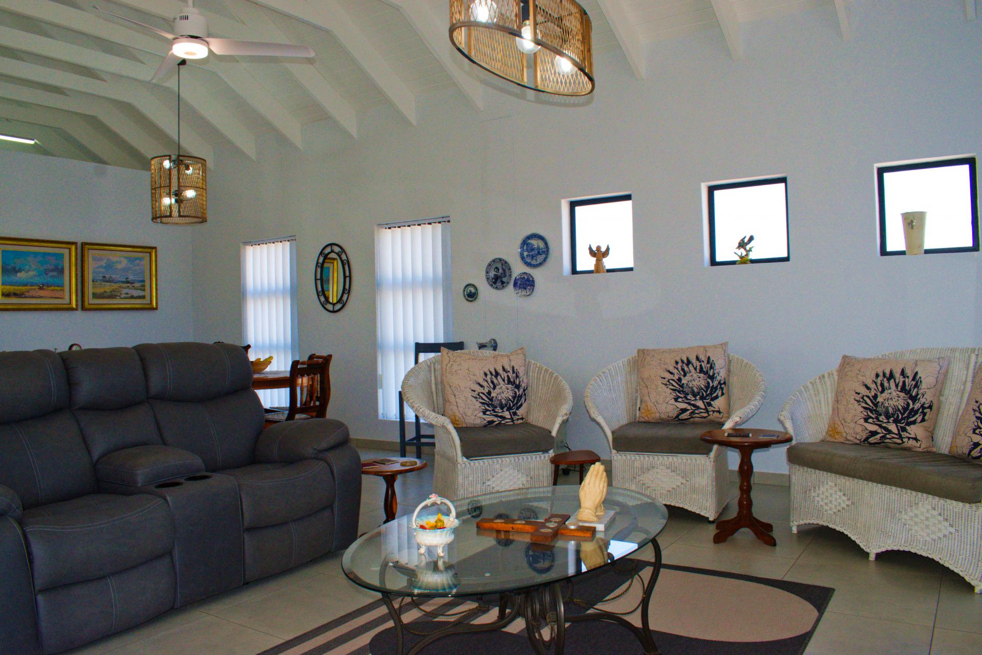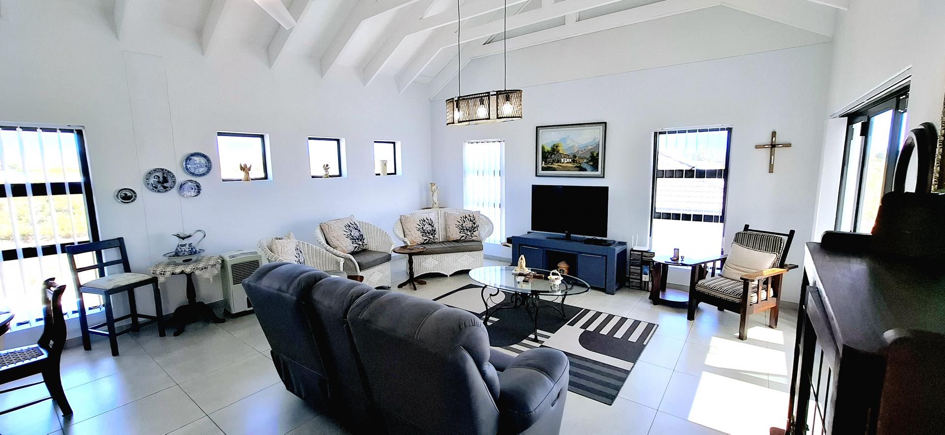 • Spacious living area that leads out onto a patio with a built-in braai and views over Shelley Point Estate.