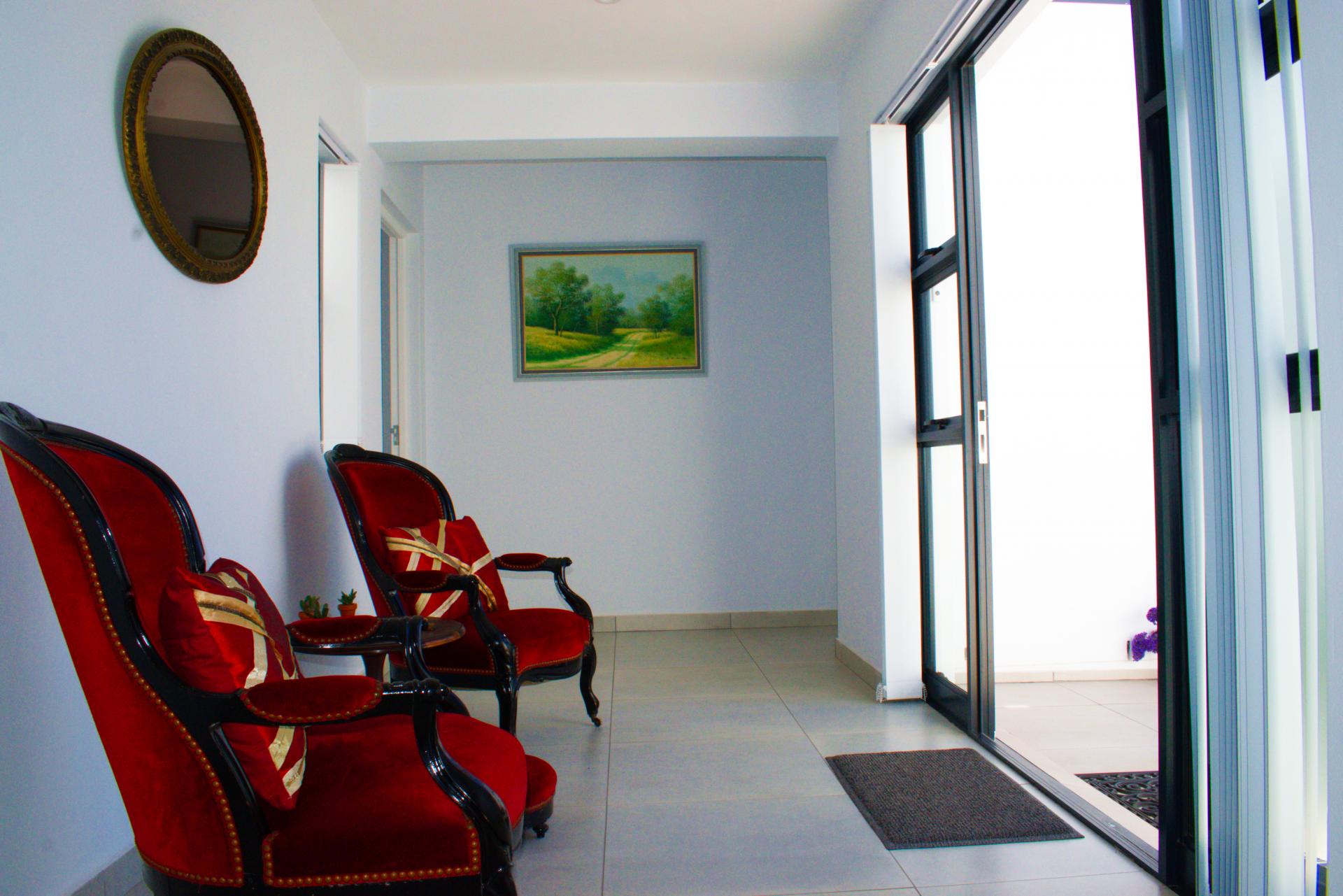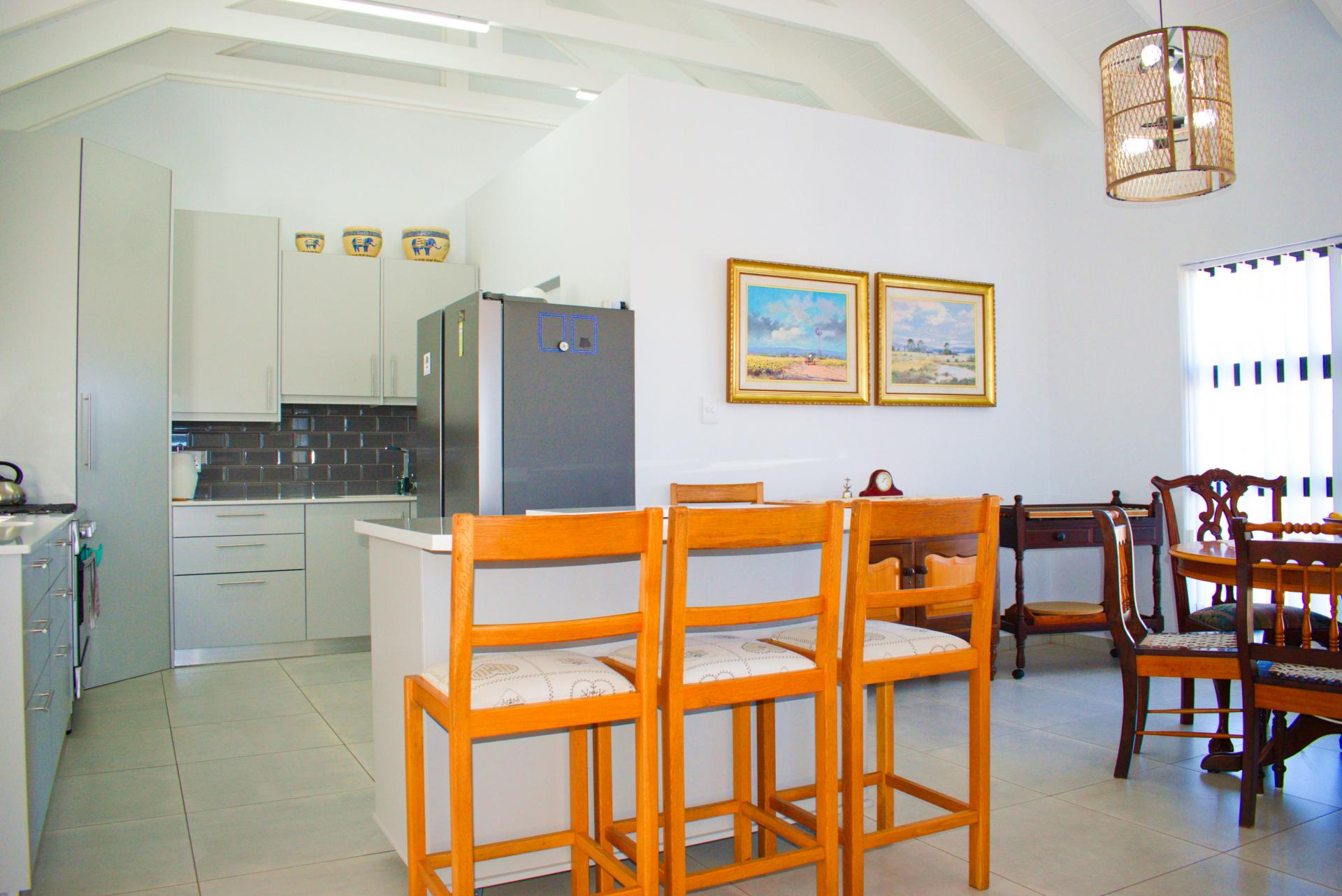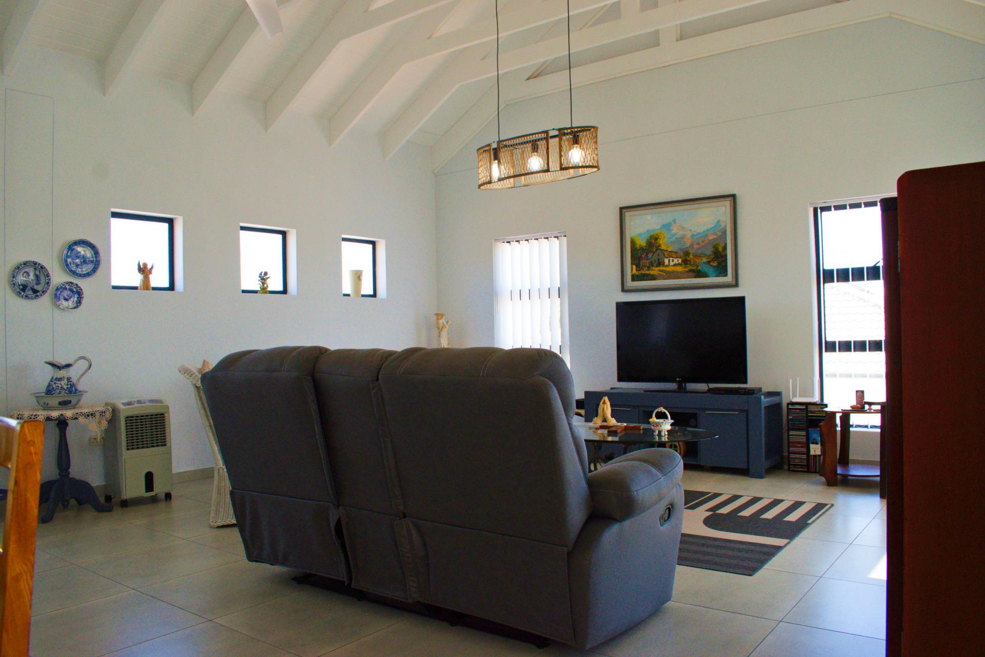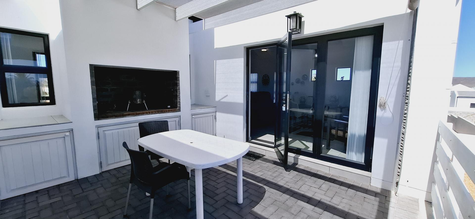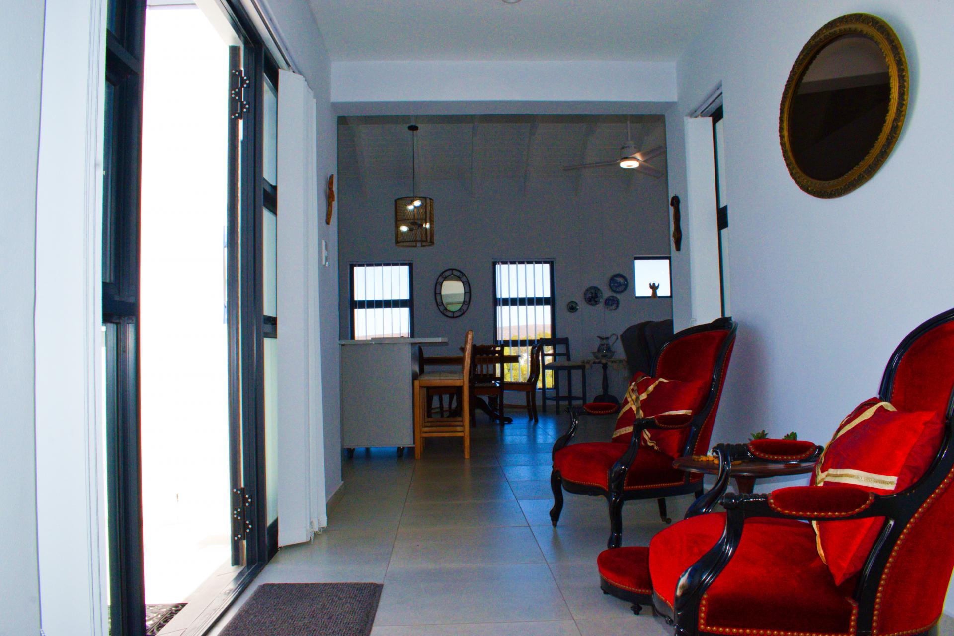 • Spacious living area that leads out onto a patio with a built-in braai and views over Shelley Point Estate.