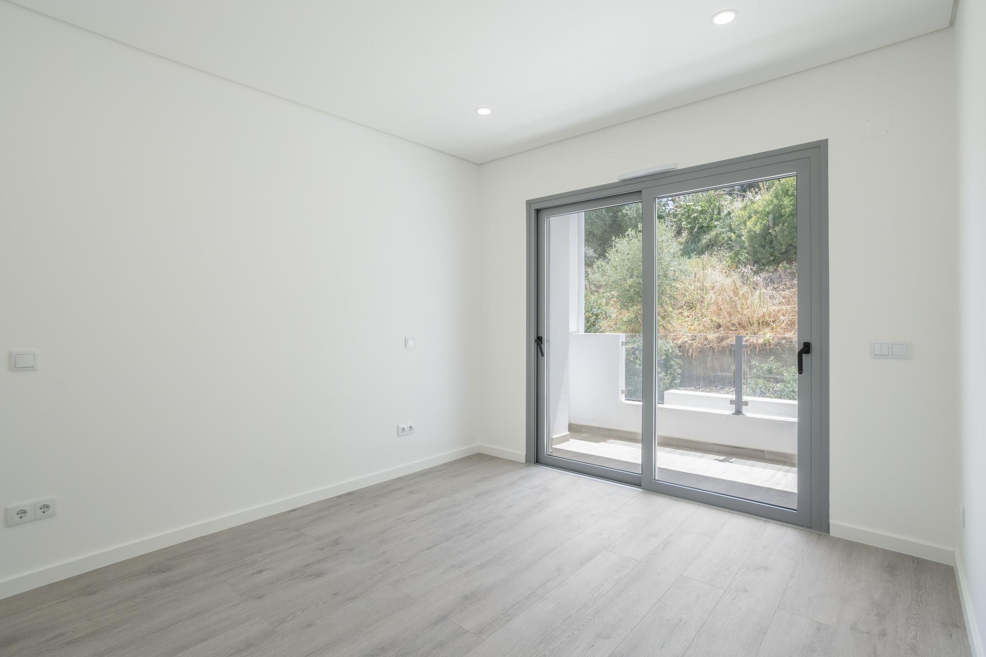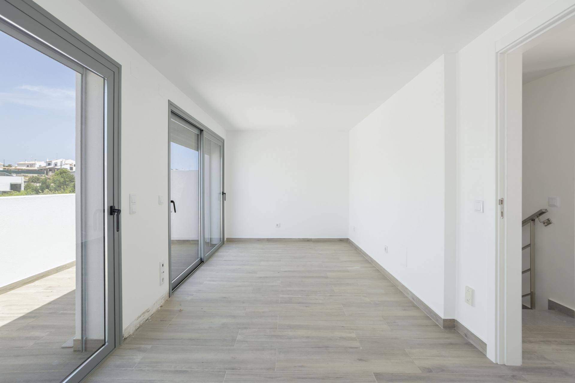 No piso superior encontram-se três quartos espaçosos, todos com roupeiros embutidos e varandas privadas. A suite principal dispõe de uma varanda privativa com vistas amplas, perfeita para relaxar. Os outros dois quartos têm vista para uma envolvente natural tranquila e partilham uma casa de banho completa.