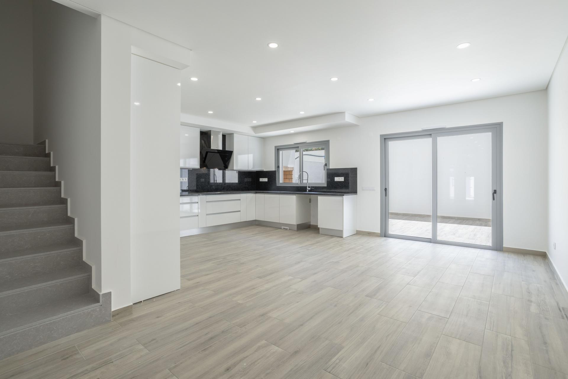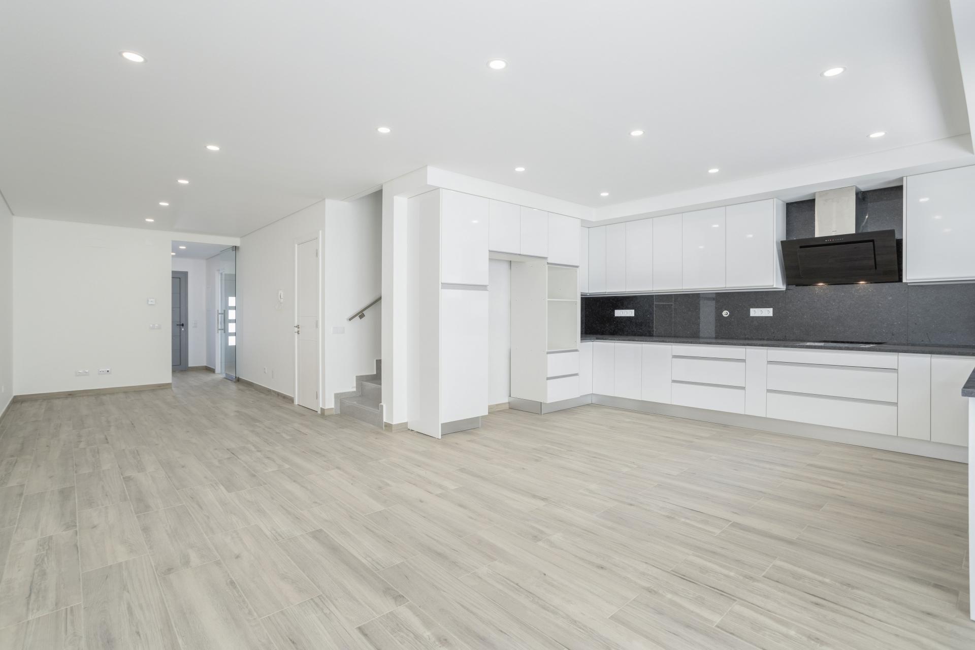 O coração da casa é a sala de estar e de jantar em open space (aprox. 42,5 m²), perfeitamente ligada a uma cozinha moderna totalmente equipada. A partir daqui, aceda ao terraço com uma área dedicada para churrasqueira - ideal para convívios ao ar livre. A garagem versátil neste piso pode facilmente ser convertida num quarto adicional, escritório ou espaço de lazer. Inclui também uma casa de banho completa, arrumos com lavandaria e um segundo pátio que oferece espaço exterior extra e muita luz natural.