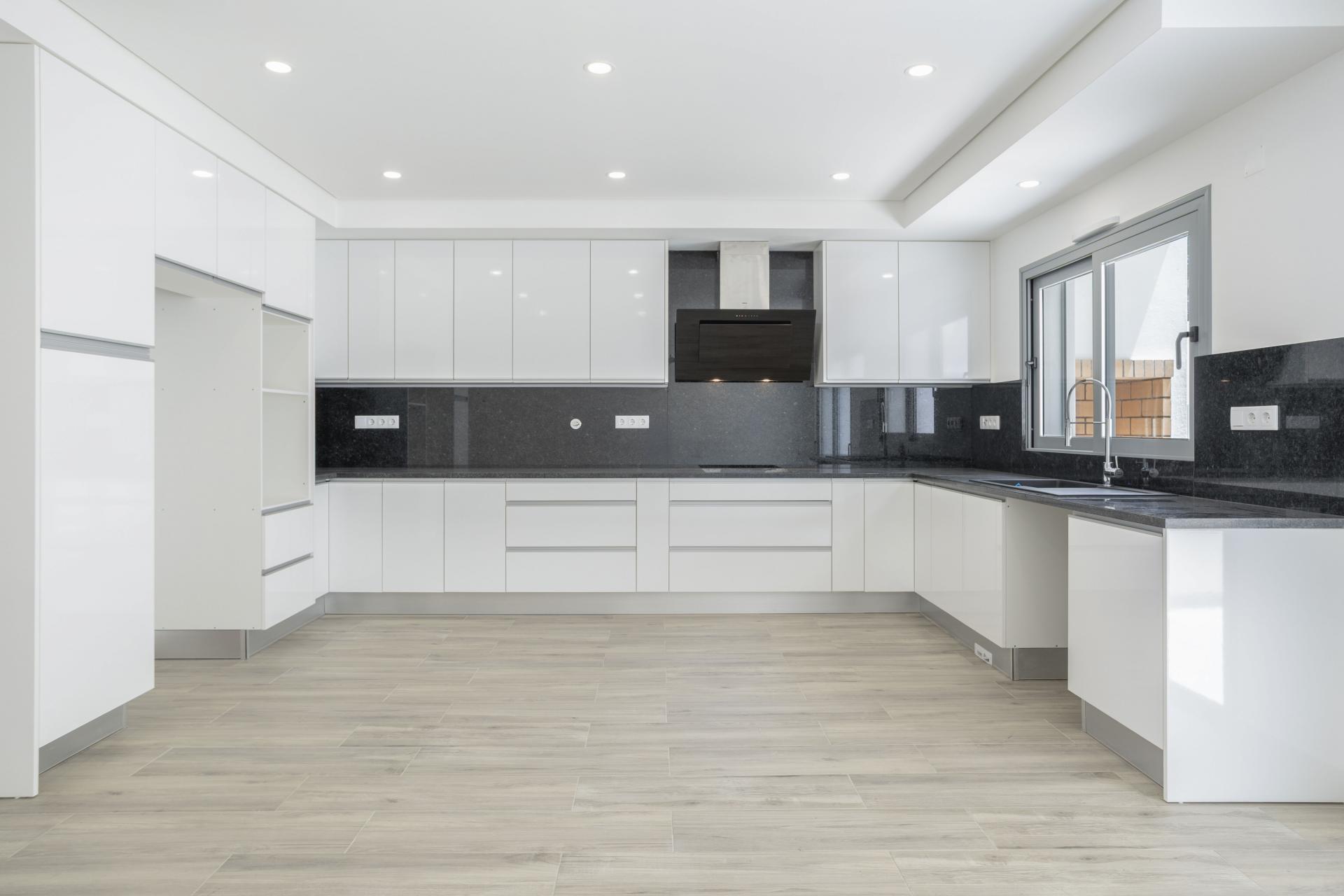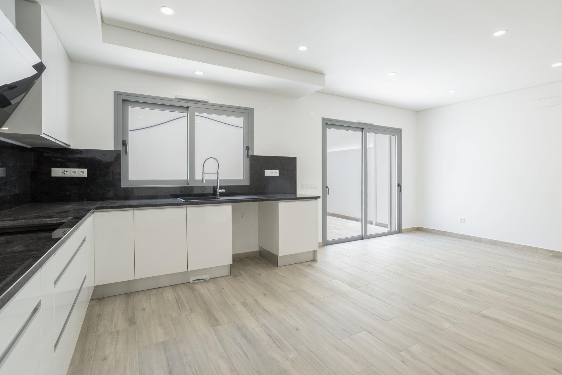 Das Herzstück des Hauses ist der offene Wohn- und Essbereich (ca. 42,5 m²), der nahtlos mit einer voll ausgestatteten modernen Küche verbunden ist. Von hier aus gelangen Sie auf die Terrasse mit einem separaten Grillbereich – ideal für geselliges Beisammensein im Freien. Die vielseitige Garage auf dieser Ebene kann problemlos als zusätzliches Schlafzimmer, Büro oder Hobbyraum genutzt werden. Ebenfalls vorhanden sind ein komplettes Badezimmer, ein Abstellraum mit Wascheinrichtungen sowie ein zweiter Innenhof, der zusätzlichen Außenbereich und viel Tageslicht bietet.