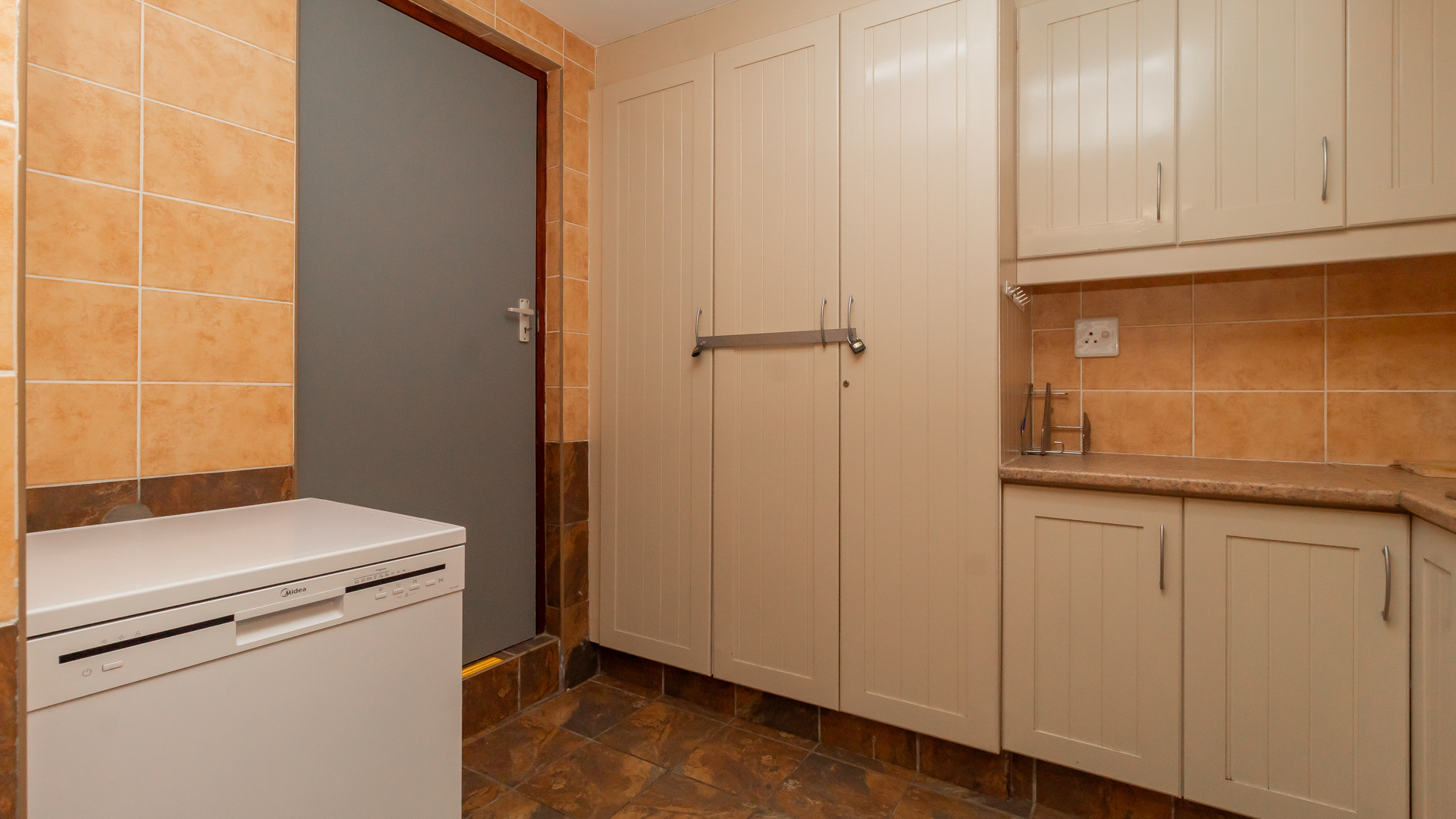 The downstairs area boasts a large, fully-equipped kitchen perfect for preparing family meals or catering to guests. Adjacent to the kitchen, the TV room/lounge offers a cozy space for entertainment and relaxation, making it an ideal spot for gathering with loved ones.