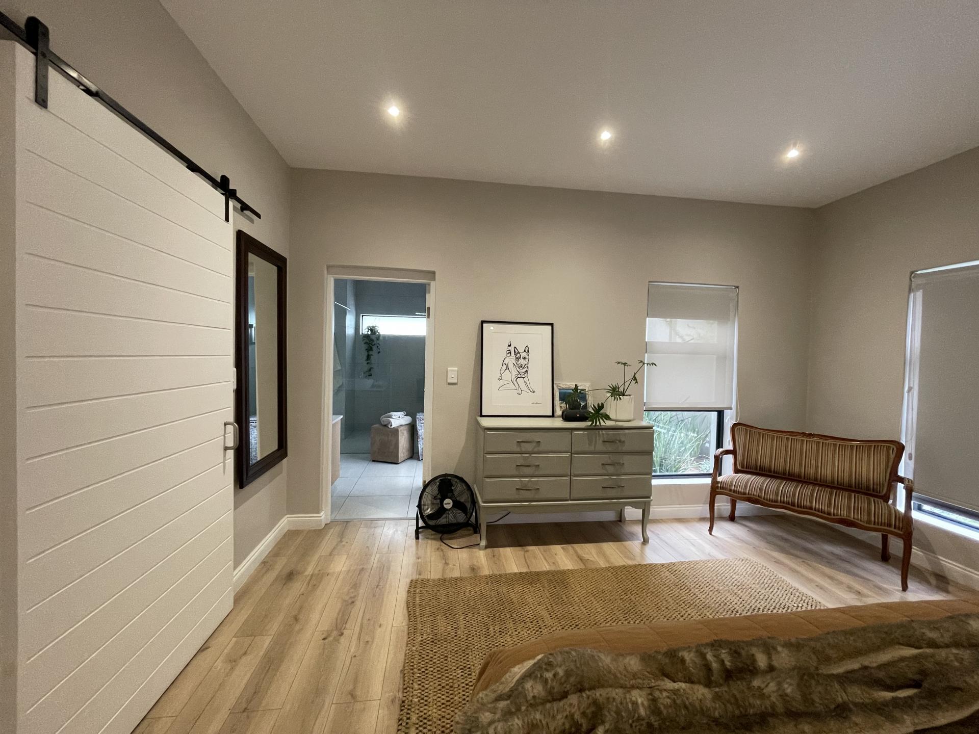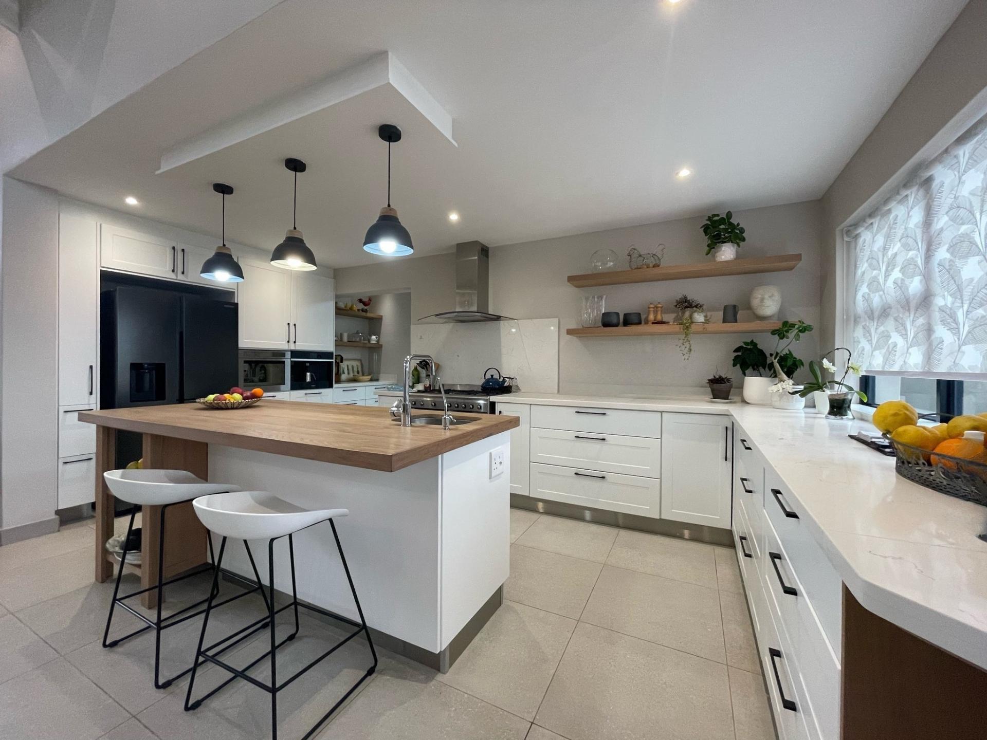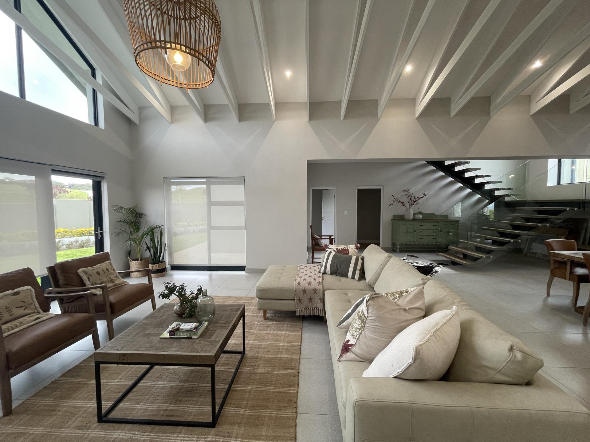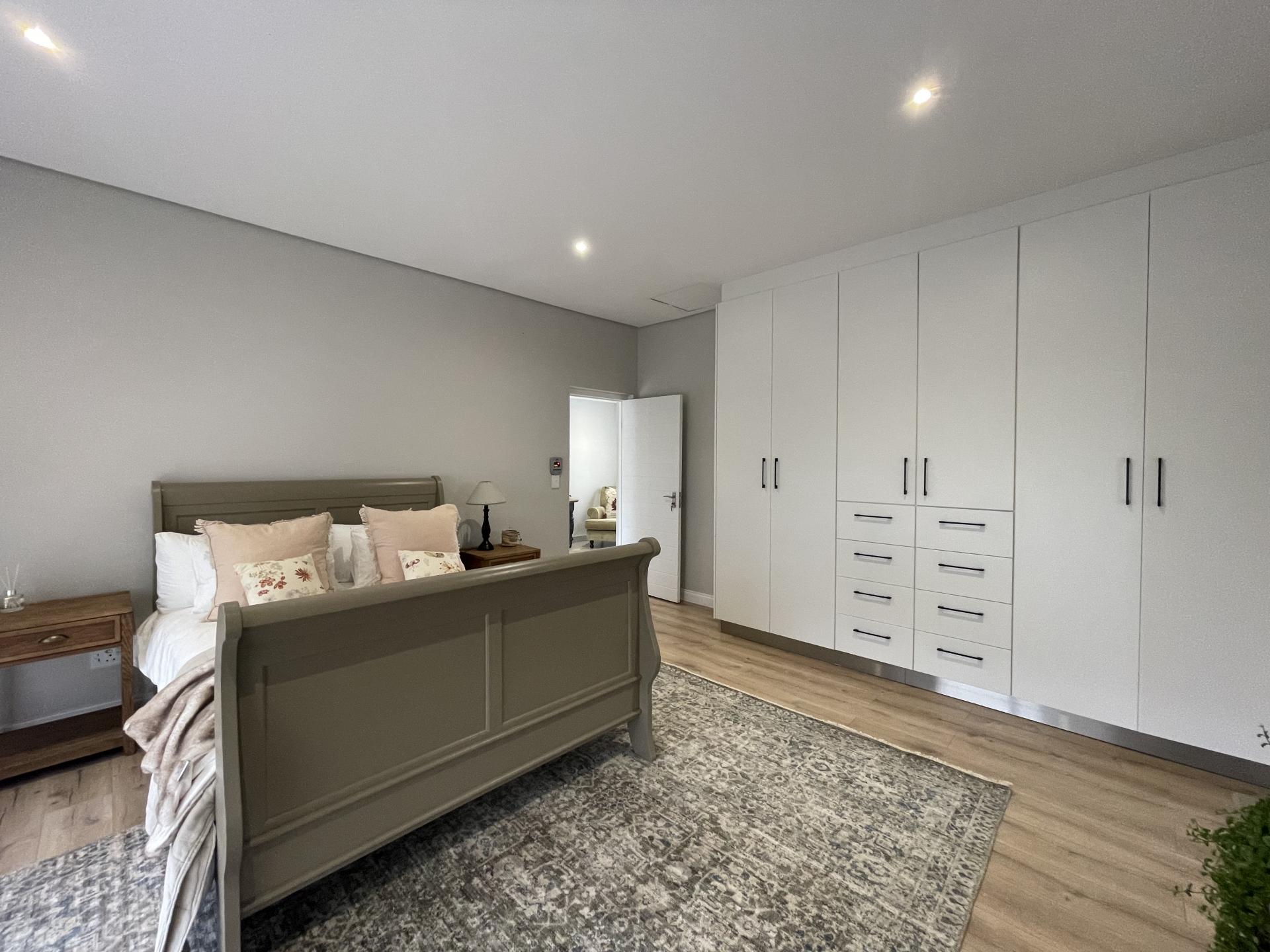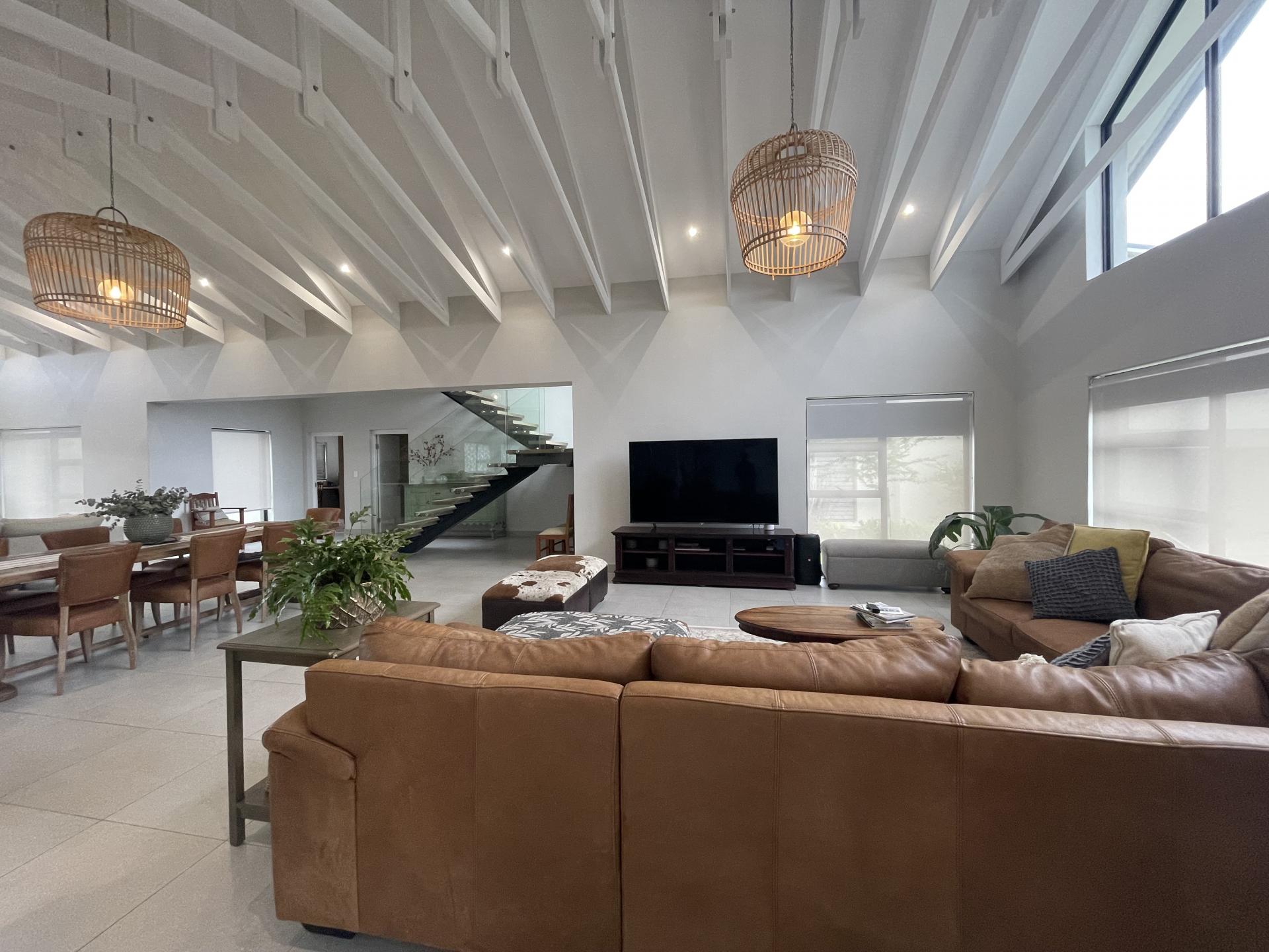 Each spacious en-suite bedroom features a walk-in closet, ensuring ample storage and a touch of elegance. The open-plan living spaces are enhanced by high open trusses, creating a grand sense of volume. This entertainment-ready home boasts a built-in gas grill and traditional braai facilities, perfect for gatherings. Cozy up by the inviting fireplace on cooler evenings, making this home an ideal year-round retreat. The well-maintained, beautifully landscaped garden enhances the outdoor space, providing tranquility and easy upkeep.