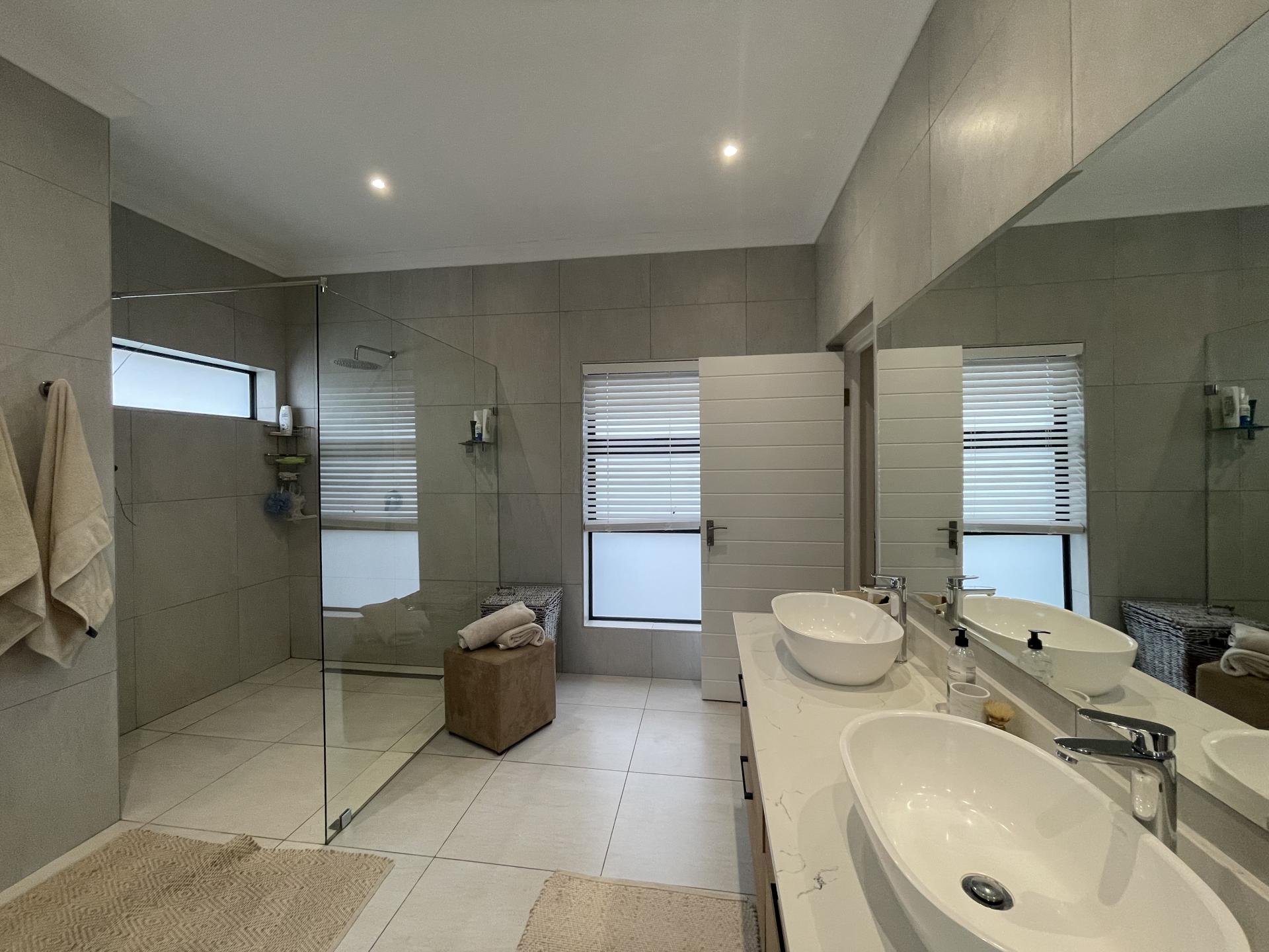 A standout feature of this property is the 12-panel solar system, consisting of a 5kVA Victron inverter with two 5kVA battery systems, which feeds back into the Oubaai grid (most months there is a credit for electricity ).