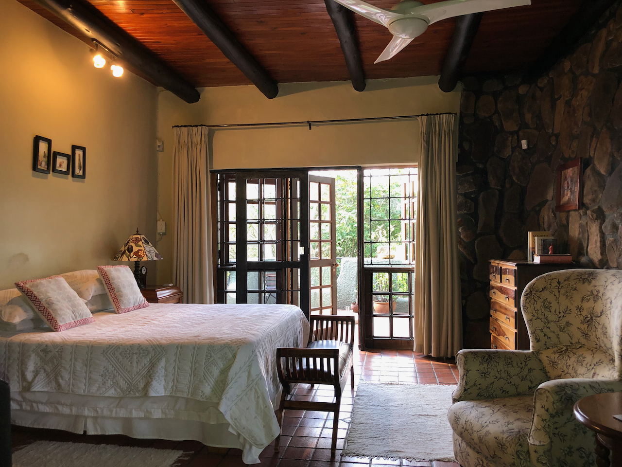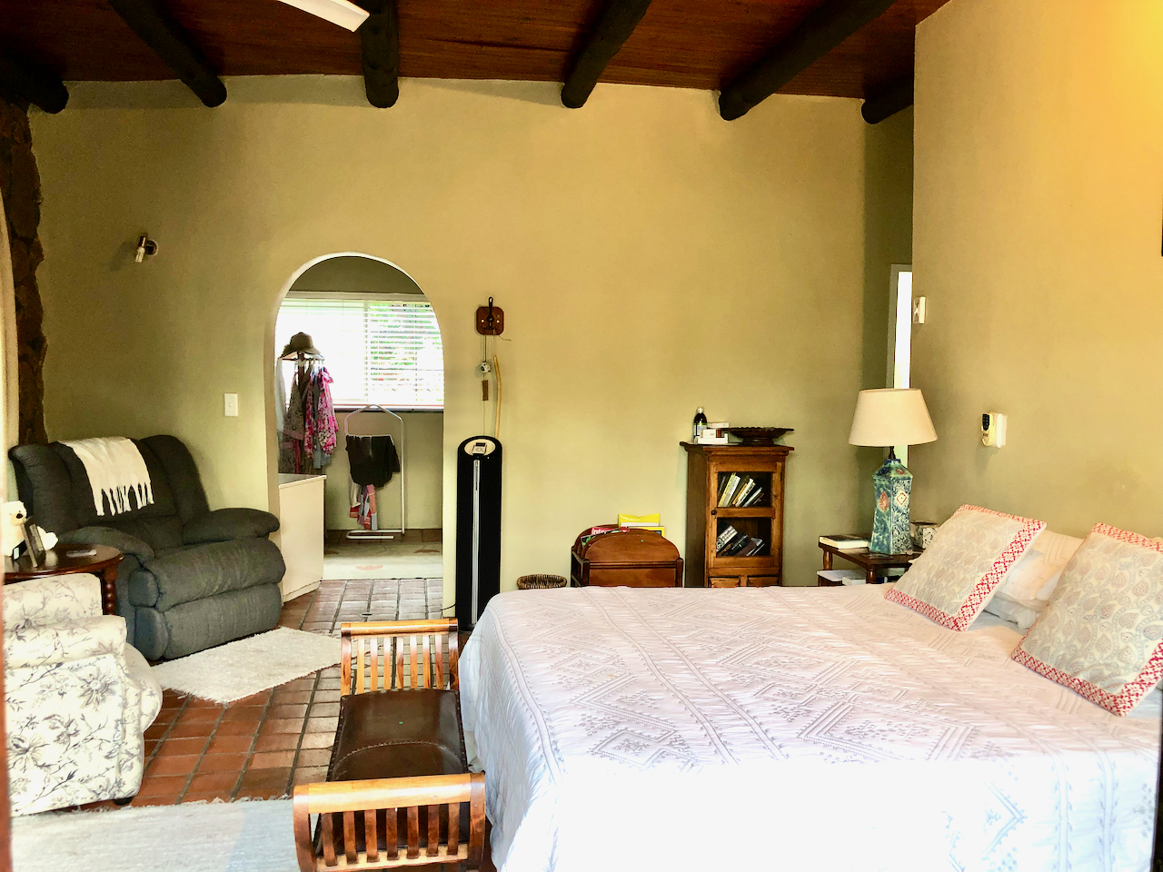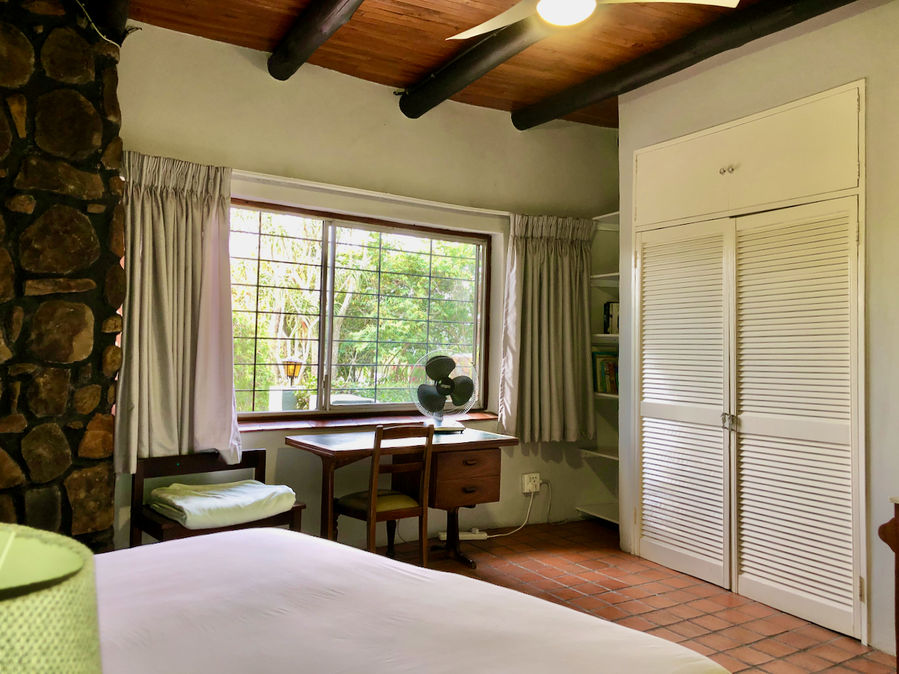 Luxurious main bedroom: Indulge in the comfort of the main bedroom featuring a walk in cupboard, en suite bathroom, and a private balcony leading to the pool area, creating a serene retreat for relaxation.