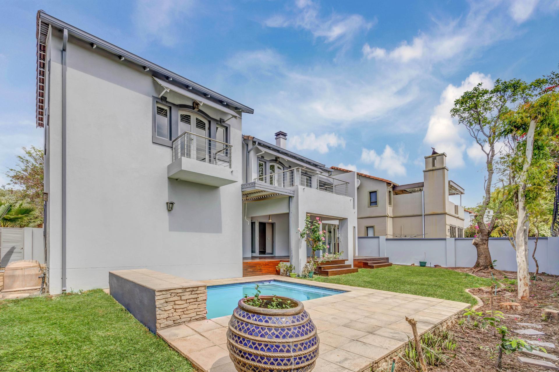 This modern double-story home offers the perfect balance of comfort, style, and security – an ideal choice for families and professionals alike. Set inside the popular Castellet Country Estate, this home combines modern luxury with everyday convenience. Whether entertaining by the pool, enjoying a family braai in the garden, or simply appreciating the secure lifestyle, it’s the perfect place to call home. Downstairs offers a spacious open plan dining-room & lounge with an adjoining study and guest cloak room. The kitchen is large and offers ample space and flow to the outside and inside. Downstairs flows seamlessly to a deck which leads to a level garden and sparking swimming pool. Upstairs accommodates 3 well located bedrooms, all with balconies and BIC. The main bedroom has a large full en-suite and walk in closet while the other bathroom is also a full bathroom providing convenience. Extras include an alarm system and built in gas stove.