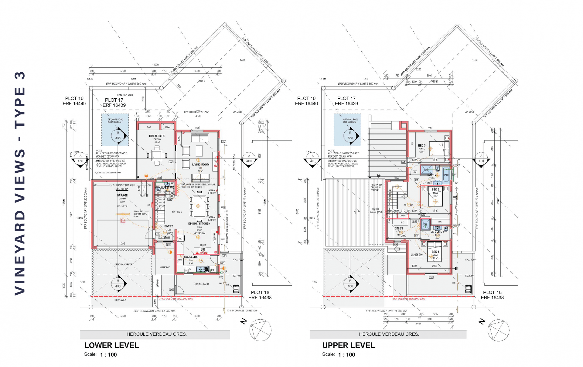 As the newest addition to Verdeau Lifestyle Estate, this collection of homes offers some of the best views in the estate, overlooking the beautiful vineyards. Perfectly blending modern design with a scenic backdrop, these homes are a sought-after choice for those who value both aesthetics and a high-quality lifestyle. These stunning Type 3 Homes feature 3 spacious bedrooms - the master bedroom boasting a separate dressing room, 2.5 stylish bathrooms, and a double garage (with an optional carport). Premium finishes include laminated floors, and the homes offer an optional pergola, a covered patio, and a braai area for outdoor entertainment. You also have the option to add a pool, enhancing the luxury and convenience of your home. Priced from R 3 595 000 to R 4 015 000.