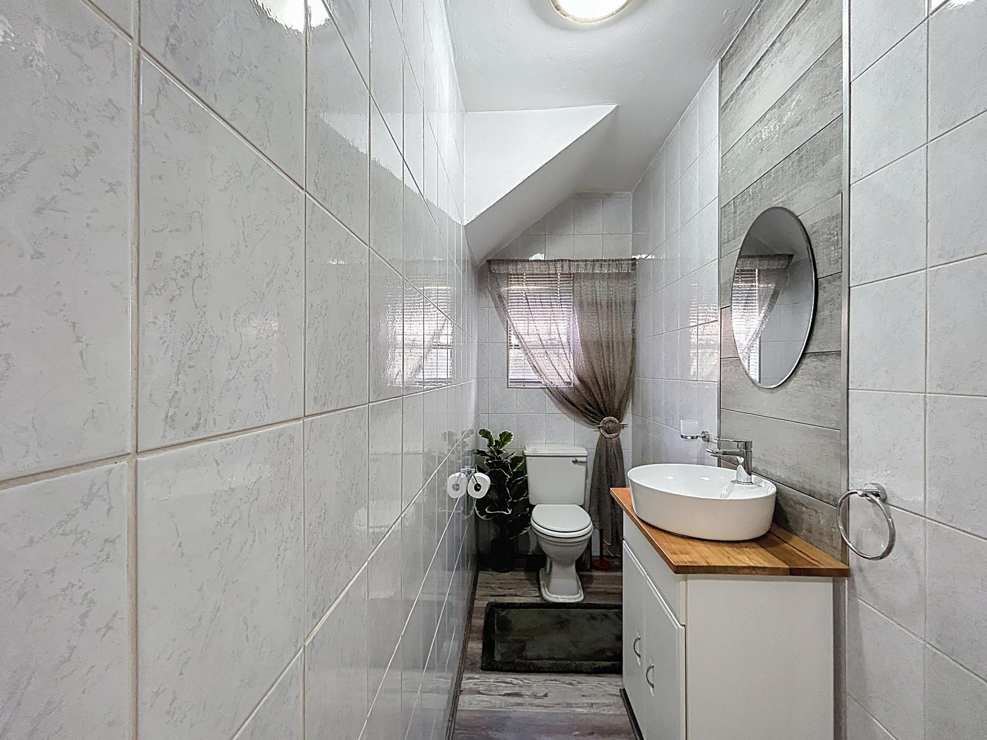 The ground floor welcomes you with an entrance hall leading to two spacious living areas, a dining room, lounge, modern kitchen with separate scullery, and a guest toilet.