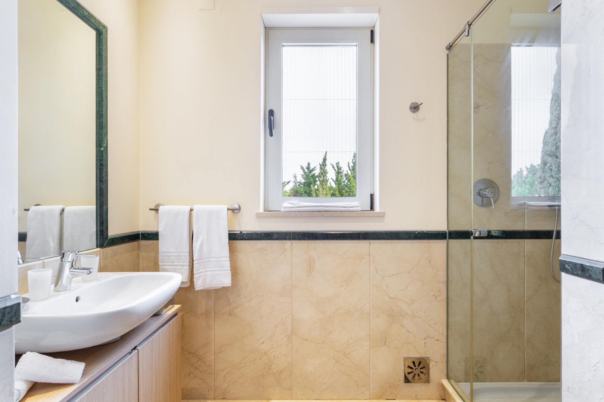 On the ground floor, a generous guest bedroom with an en-suite bathroom and a separate WC offer privacy and convenience, while built-in storage enhances the villa’s functionality.